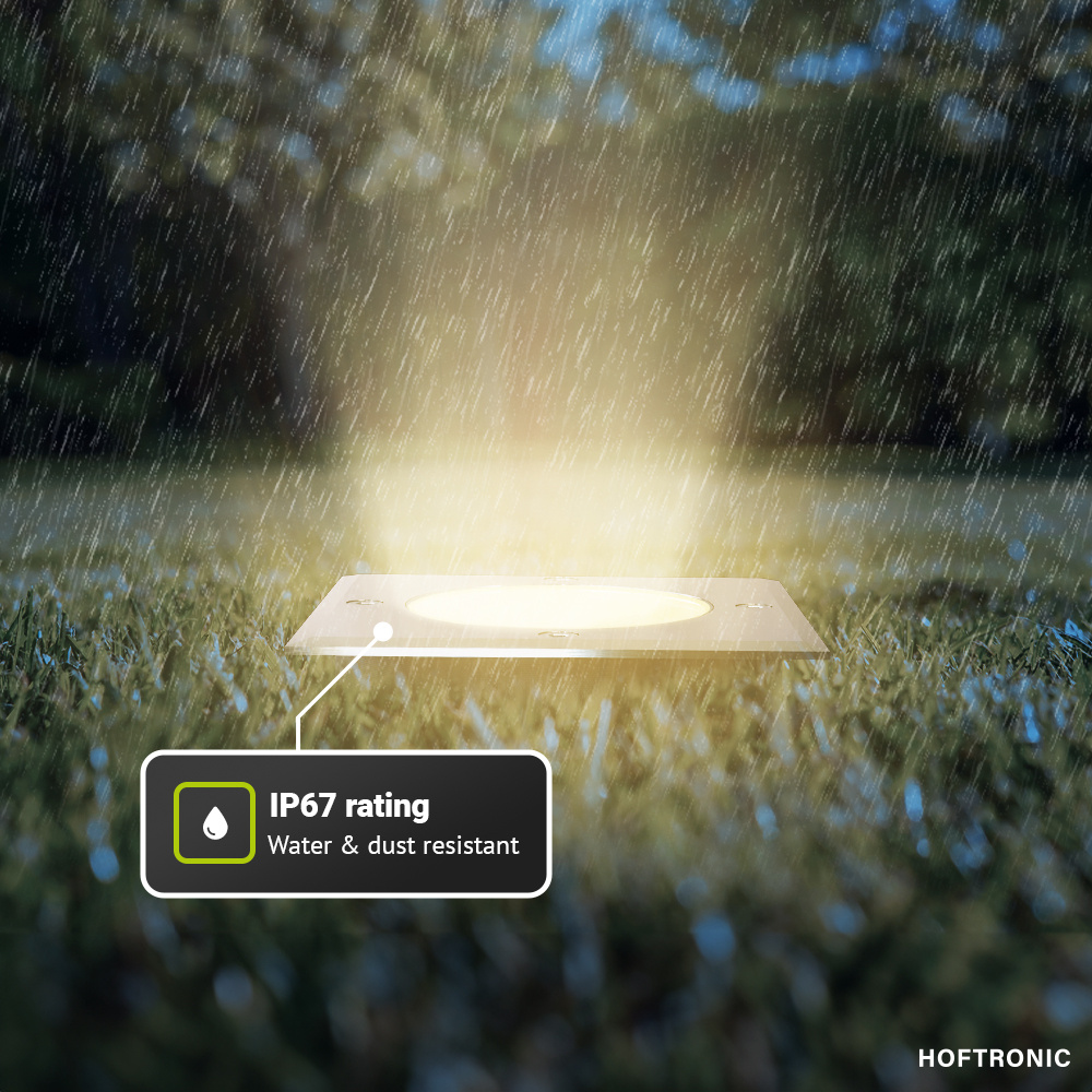 De Cody grondspots zijn vol IP67 waterdicht en stofdicht. Producten met deze waterdichtheidsklasse kunnen maximaal tegen diverse weersomstandigheden en kunnen zonder problemen het hele jaar buiten ingezet worden. Zorg er wel voor bij het installeren dat de grondspots niet in een kuil water blijven staan na een regenbui of sneeuwbui.