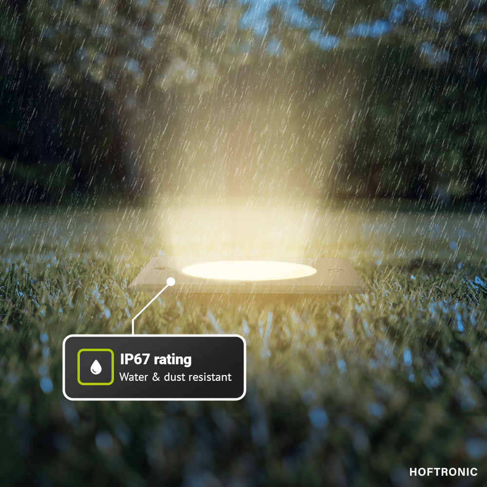 • IP67 beschermingsklasse: De grondspots zijn vol IP67 waterdicht en stofdicht. De spots zijn dus extreem bestand tegen uiteenlopende weerinvloeden.