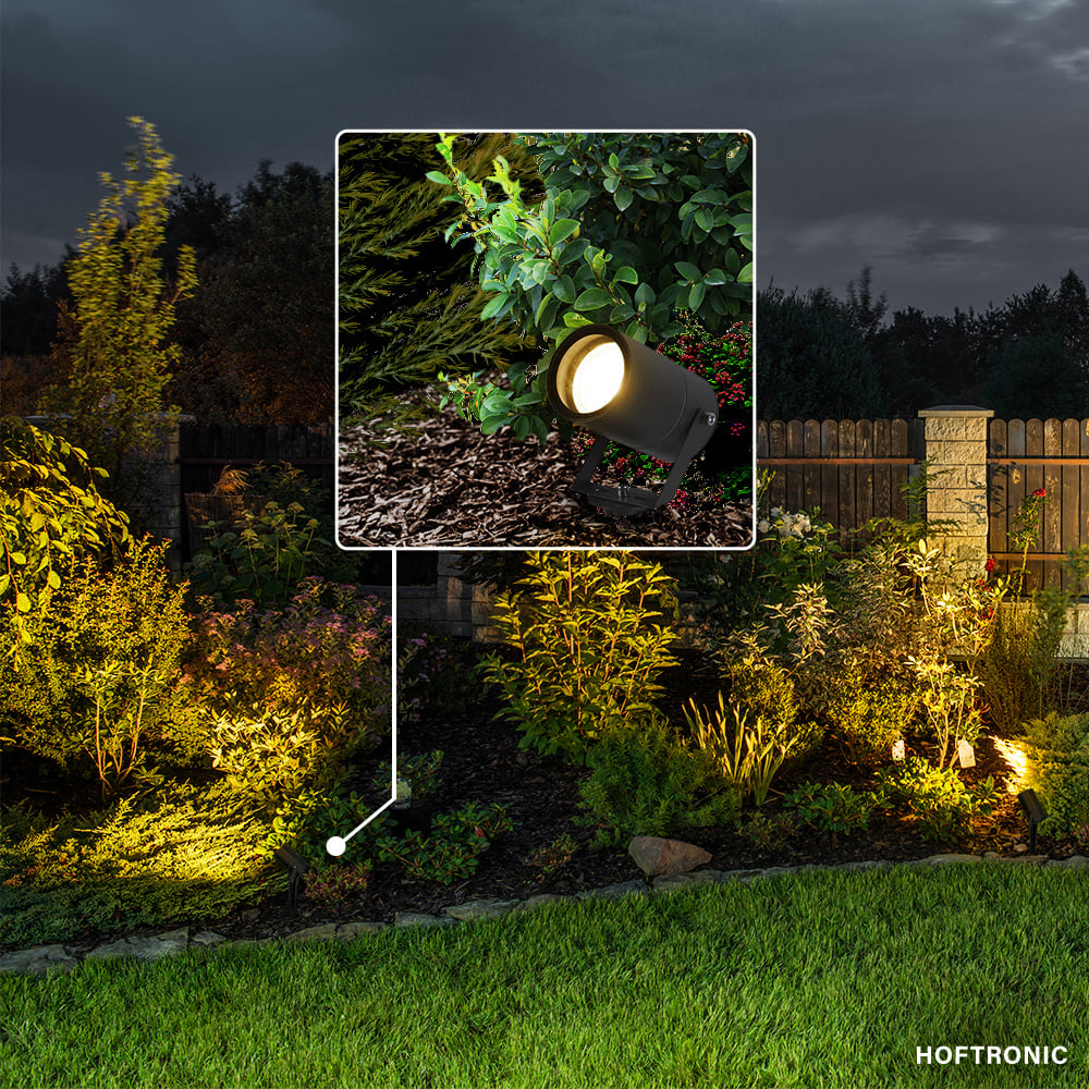 HOFTRONIC Set van 9 LED Prikspots Spikey – 2700K – zwart – IP65 – Incl. dimmer met afstandsbediening