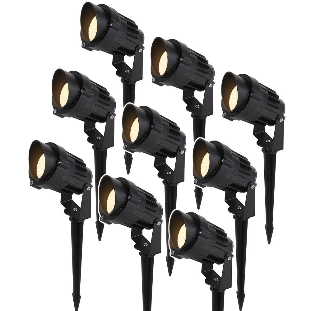 HOFTRONIC Set van 9 moderne zwarte LED prikspot Renzo met kap – 10 Watt – Warm wit 3000K – IP65 Waterdicht ideaal als tuinverlichting