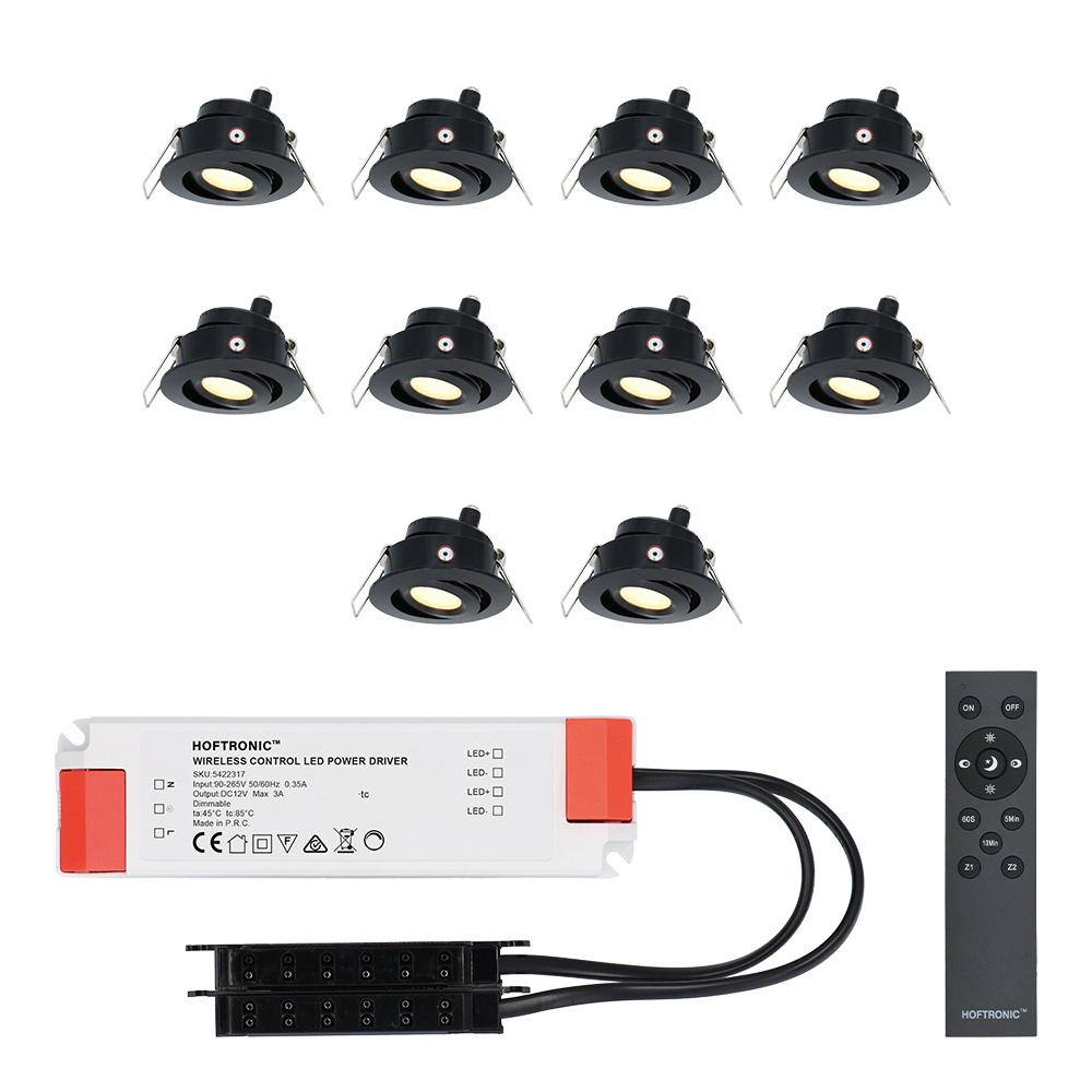 Breng warme sfeerverlichting aan in je erker met deze totale set Sienna LED inbouwspots. Deze set bevat 10 korte dimbare en kantelbare Cree LED inbouwspots van 3 watt. De inbouwspots hebben een warme lichtkleur van 2700K en een lichtsterkte van 200 lumen waarmee je de foutloze sfeer kunt creëren. De set wordt verder geleverd inclusief dimbare transformator, afstandsbediening, verdeler en 5 meter kabel per inbouwspot. Blijf harmonieus zitten terwijl je de spotjes bedient met de afstandsbediening. Hiermee dim je de spotjes of schakel je ze aan- of uit. De spotjes zijn daarnaast kantelbaar, zodat je de lichtstralen precies kunt richten waar je wilt. Deze set is tegelijk beschikbaar als set van 4, 6, 8 en 12 spots.