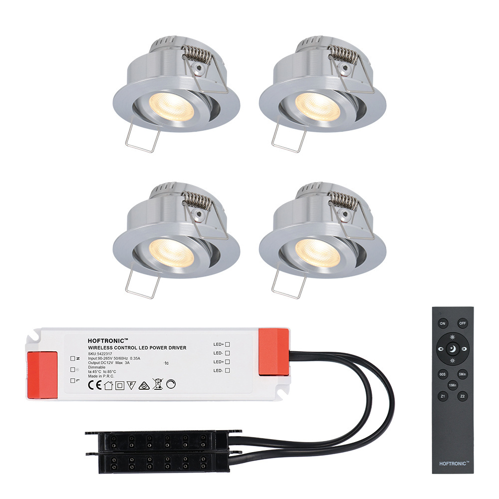 Breng warme sfeerverlichting aan in je veranda met deze maximale set Sienna LED inbouwspots. Deze set bevat 4 bondige dimbare en kantelbare Cree LED inbouwspots van 3 watt. De inbouwspots hebben een warme lichtkleur van 2700K en een lichtsterkte van 200 lumen waarmee je de keurige sfeer kunt creëren. De set wordt verder geleverd inclusief dimbare transformator, afstandsbediening, verdeler en 5 meter kabel per inbouwspot. Blijf melodieus zitten terwijl je de spotjes bedient met de afstandsbediening. Hiermee dim je de spotjes of schakel je ze aan- of uit. De spotjes zijn daarnaast kantelbaar, zodat je de lichtstralen accuraat kunt richten waar je wilt. Deze set is tevens verkrijgbaar als set van 6, 8, 10 en 12 spots.