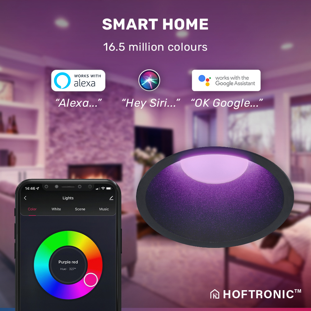 Koppel de LED inbouwspot aan de gratis Hoftronic Smart app en je krijgt toegang tot tientallen smart functies. Zo haal je het maximale uit je smart verlichting. Een korte greep uit deze smart functies zijn: