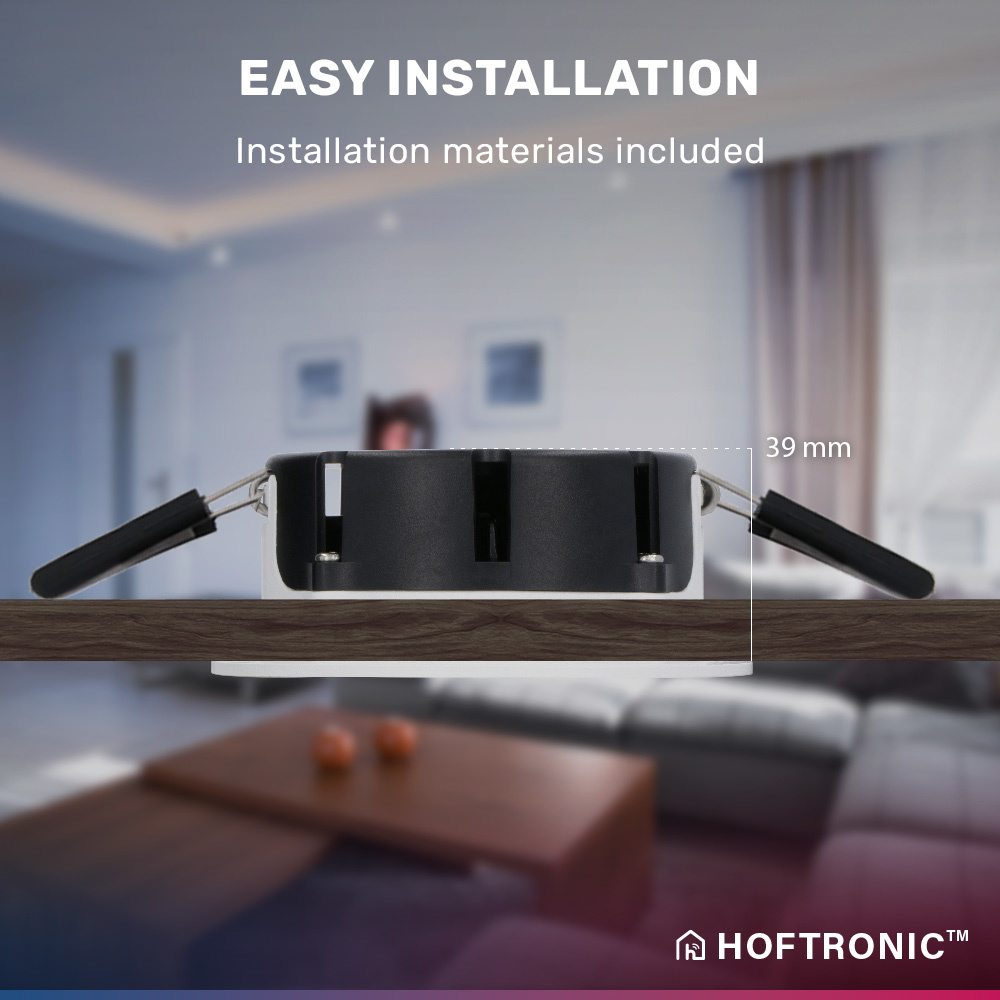 De SMART RGBWW inbouwspot Napels wit van Hoftronic Smart is een mooi en modern product om je huis, kantoor, zaak of in de horeca te verlichten en met de kantelbare armatuur is het mogelijk om het licht naar het gewenste oppervlak te kantelen. Het zijn slimme inbouwspots, wat betekent dat ze te bedienen zijn via je smart producten bijv. je telefoon of tablet via de gratis Hoftronic Smart app. De inbouwspots produceren 16 miljoen meerdere kleuren licht, met daarnaast een warm witte en koel witte lichtkleur. Dit maakt het mogelijk in elke ruimte een smaakvolle ambiance te creëren.