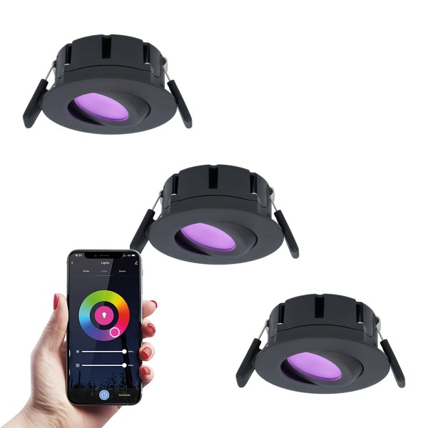 Set van 3 smart LED inbouwspot Napels zwart 8 Watt RGBWW IP65 kantelbaar WiFi + Bluetooth