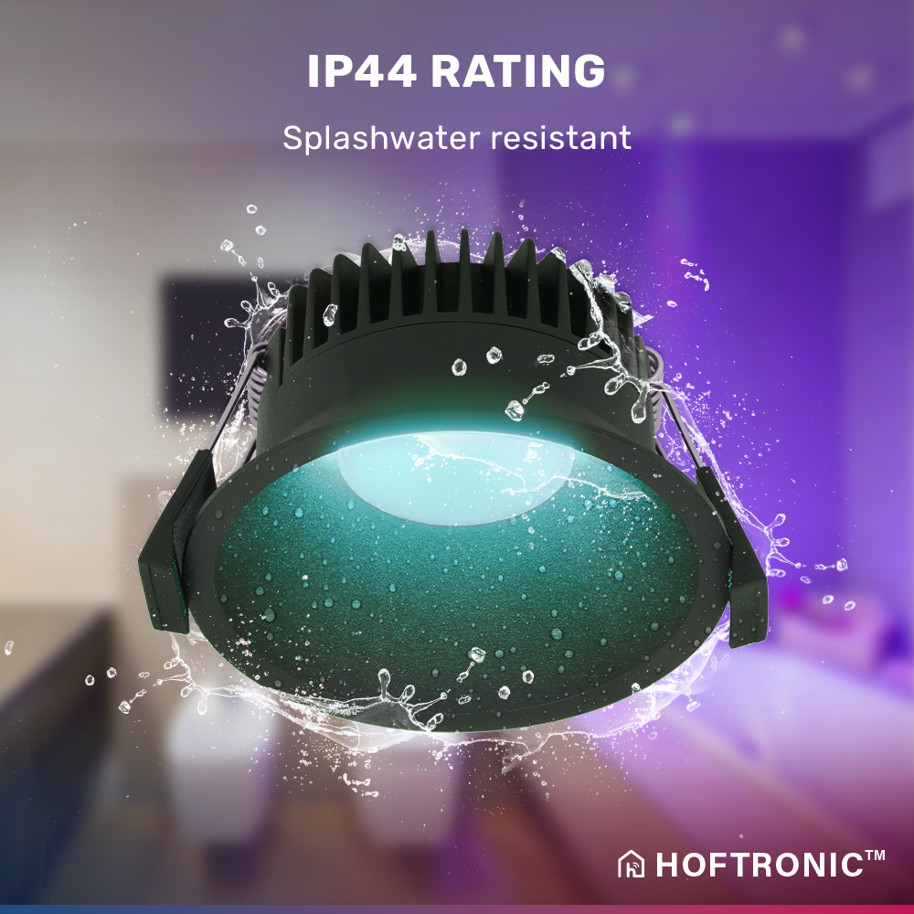 Ben je op zoek naar een zwarte Smart plafondspot met een lange levensduur? Zoek niet verder! De Finn verzonken LED spots zijn geproduceerd uit onderhoudsvrij aluminium. Met een IP44 beschermingsgraad is de spot spatwaterdicht en juist voor vochtige vertrekken zoals de badkamer.