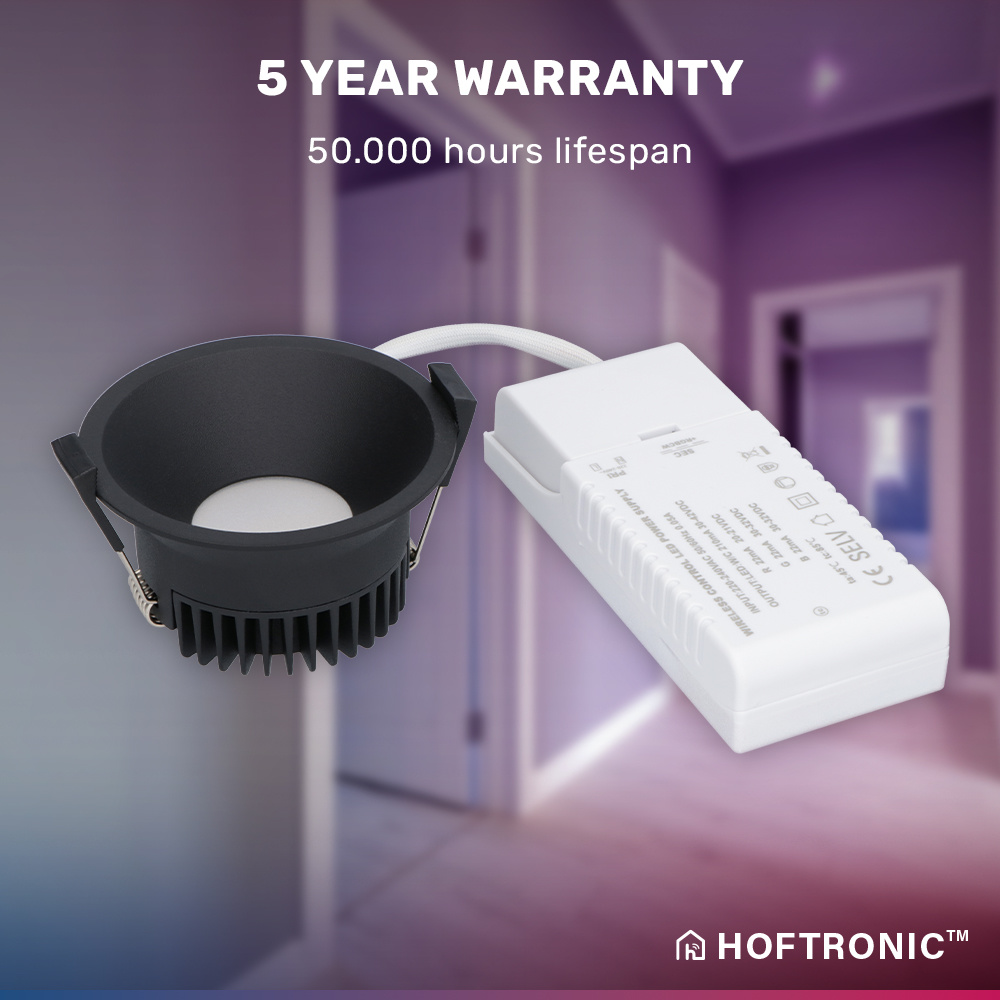 Koppel de LED inbouwspot aan de kosteloos Hoftronic Smart app en je krijgt oprit tot tientallen smart functies. Zo haal je het optimale uit je smart verlichting. Een kleine greep uit deze smart functies zijn: