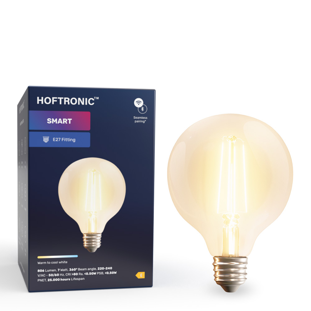 HOFTRONIC SMART 6x Smart E27 LED filament lamp – G125 – Wifi & Bluetooth – 806lm – 7 Watt – Warm wit tot koud wit