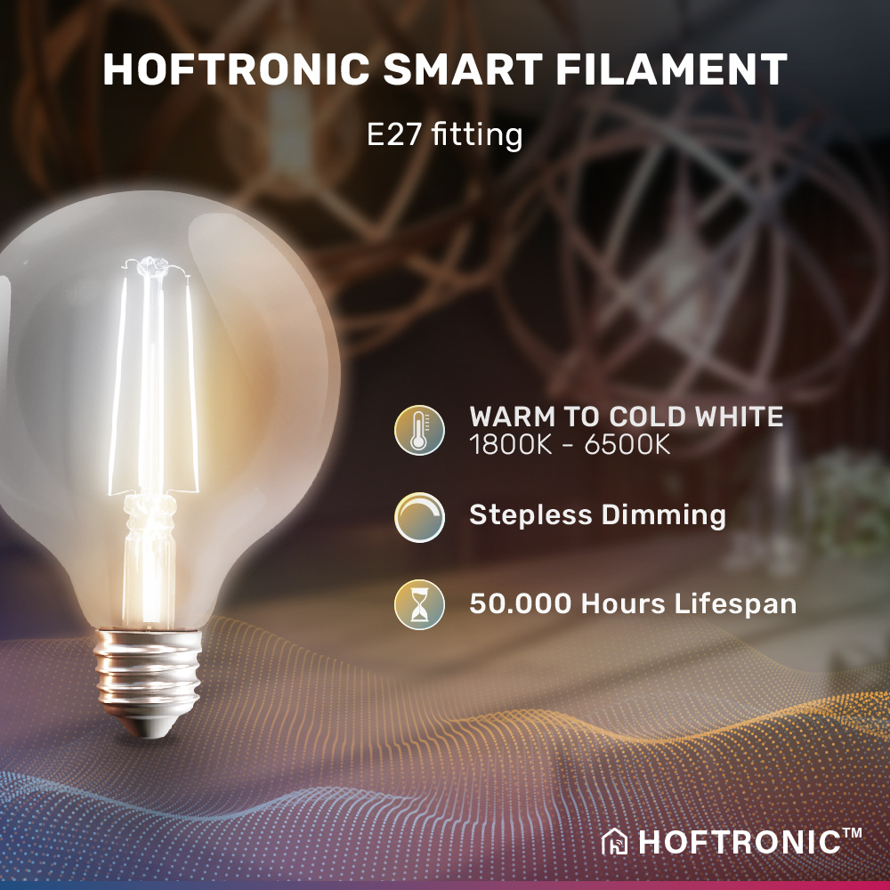 HOFTRONIC SMART 6x Smart E27 LED filament lamp – G95 – Wifi & Bluetooth – 806lm – 7 Watt – Warm wit tot koud wit