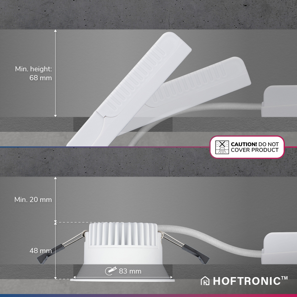 HOFTRONIC SMART Finn Smart LED inbouwspot – 10 Watt – Plafondspot – RGBWW – WiFi + Bluetooth – 630 Lumen – Binnen & buiten – Verzonken spot – Amazon Alexa + Google Assist – Wit