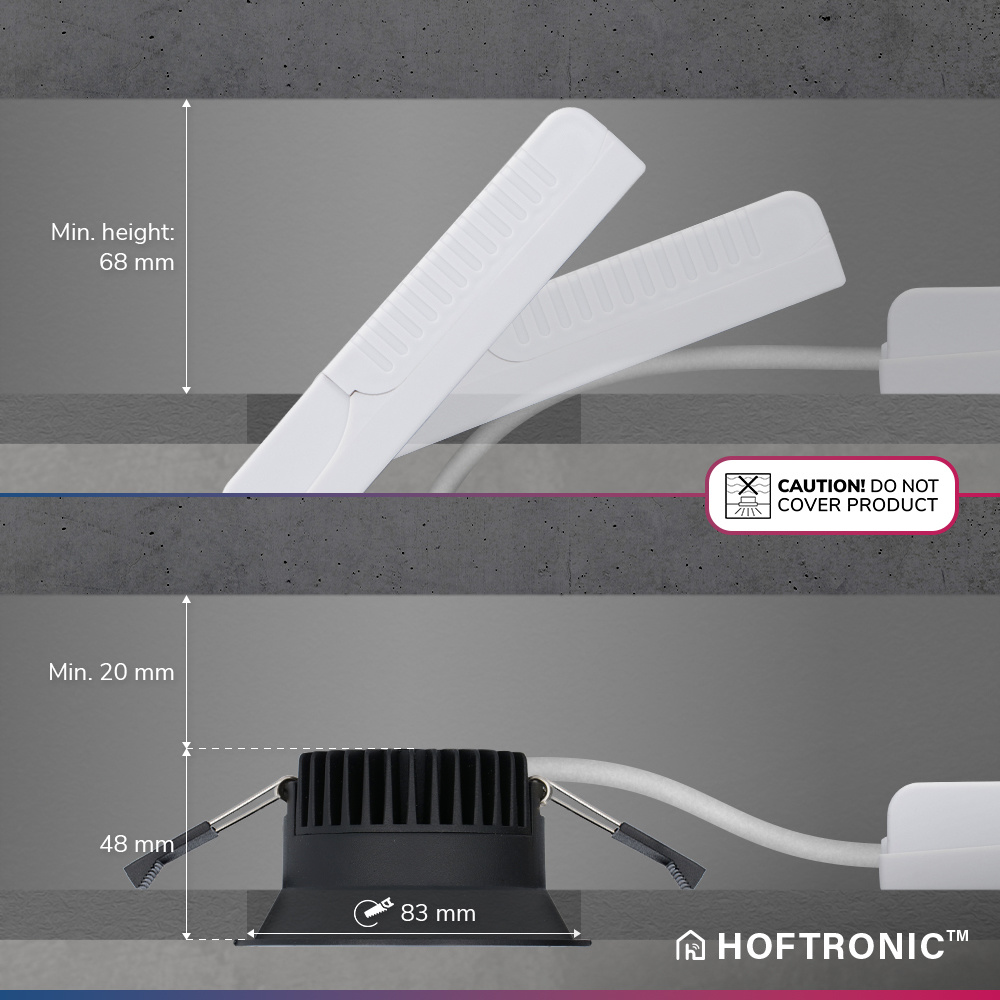 HOFTRONIC SMART Finn Smart LED inbouwspot – 10 Watt – Plafondspot – RGBWW – WiFi + Bluetooth – 630 Lumen – Binnen & buiten – Verzonken spot – Amazon Alexa + Google Assist – Zwart