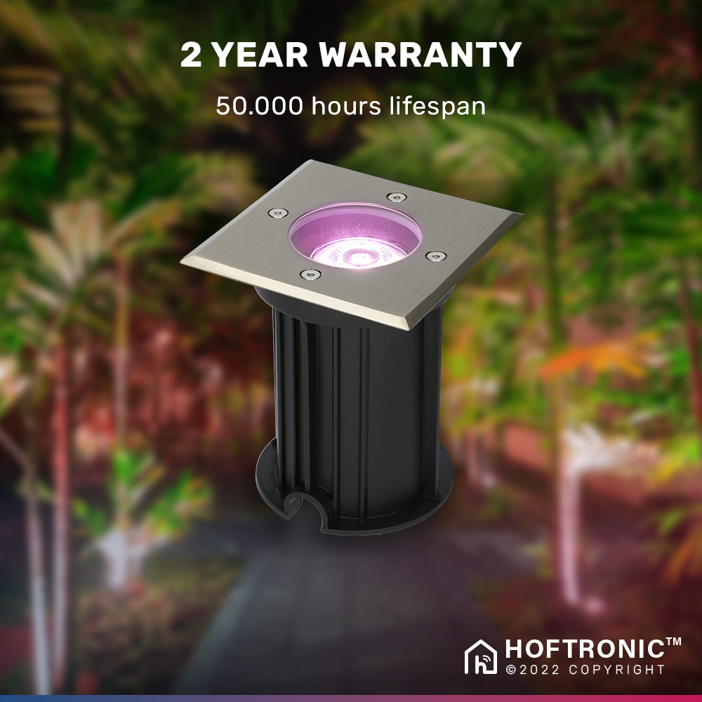 Ben je van plan om je tuin te voorzien van mooie sfeerverlichting? Gebruik dan deze klassieke smart grondspots. Deze vierkante grondspots zijn geproduceerd van kwaliteitsmateriaal aluminium, RVS en helder veiligheidsglas. Het laatste dat je wil als je in de tuin aan het borrelen bent, is in het duister zitten. Met sfeerverlichting creëer je niet alleen licht maar breng je tevens sfeer. Doordat deze grondspots smart zijn en meer dan 16 miljoen kleuren creëren kunnen, ben je continu beschermd dat je een gave ambiance hebt voor elke gelegenheid. Door de IP67 beschermingsgraad zijn deze bodemspots waterdicht en beschermd tegen de strengste weersinvloeden (niet goed voor beneden water!).