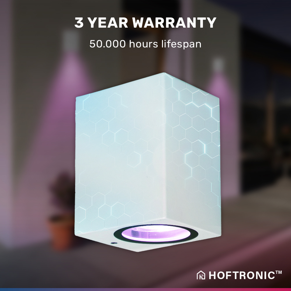 Deze slimme Hoftronic Smart wandlamp bezit over maar liefst 16,5 miljoen kleuren en alle wit kleurnuances (2700K – 6500K). Er is dus altijd wel een lichtkleur die hoort bij bij jouw situatie en gevoel. Zet de wandspot op rood voor een romantisch avondje op de bank of zet de wandlamp op blauw wanneer je je even ultiem moet concentreren.