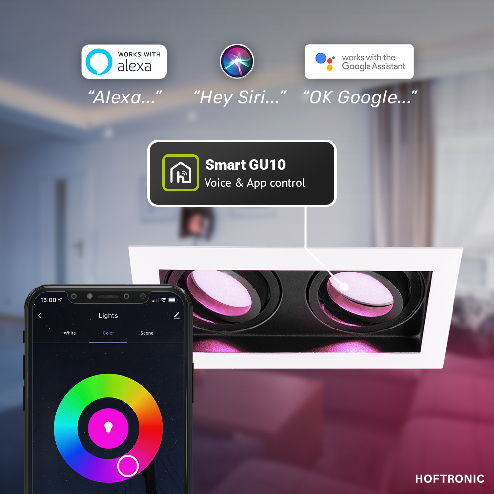 Koppel de grondspot aan de gratis Hoftronic Smart app en je krijgt toegang tot tientallen smart functies. Zo haal je het maximale uit je smart verlichting. Een korte greep uit deze smart functies zijn: