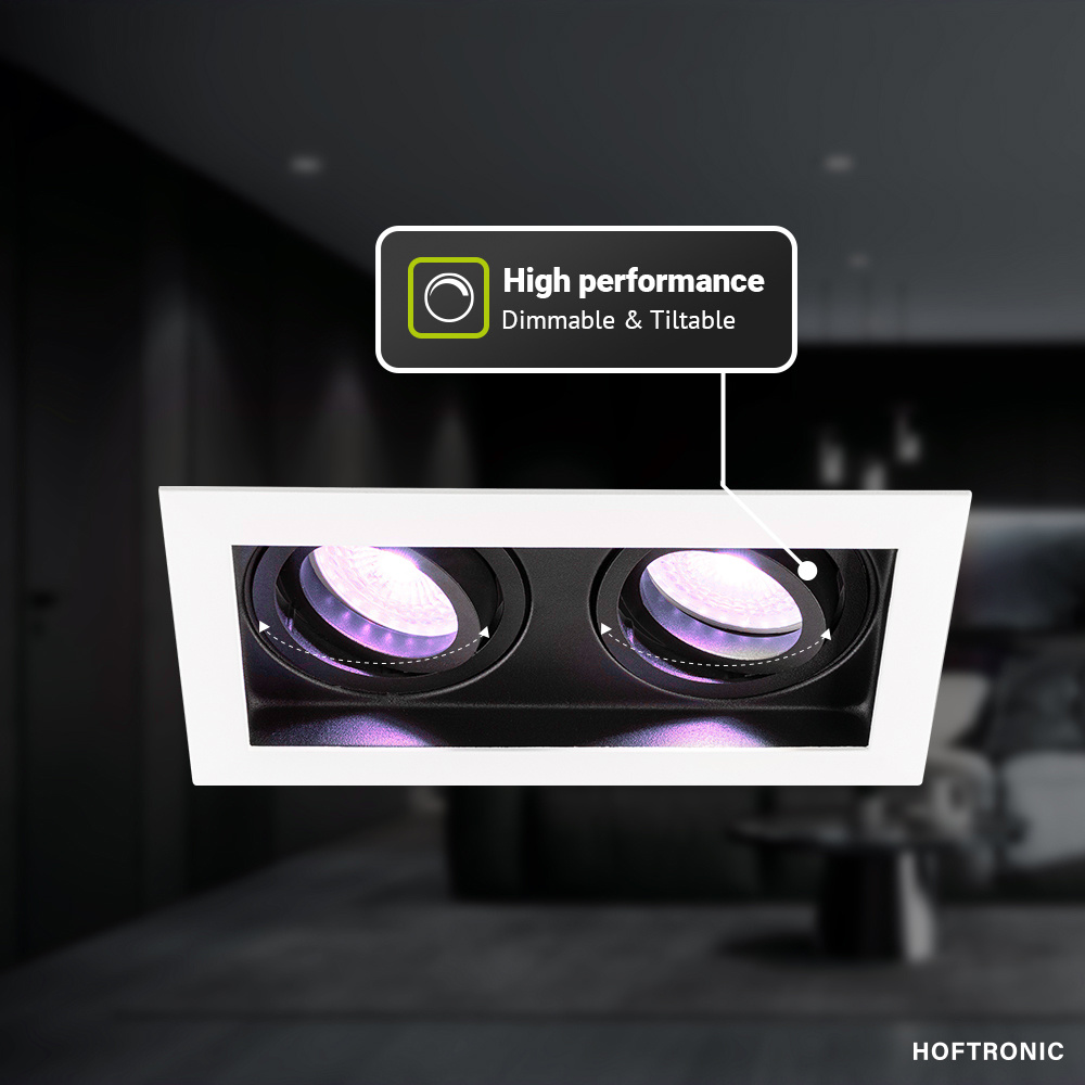 Bij deze Durham Dubbel inbouwspots worden 12 Smart GU10 lichtbronnen met 16,5 kleurenopties meegeleverd. Deze lichtbronnen worden vooral veel gebruikt als werkverlichting. Deze lichtkleur is vooral fijn in keukens, studeerkamers en gangen.