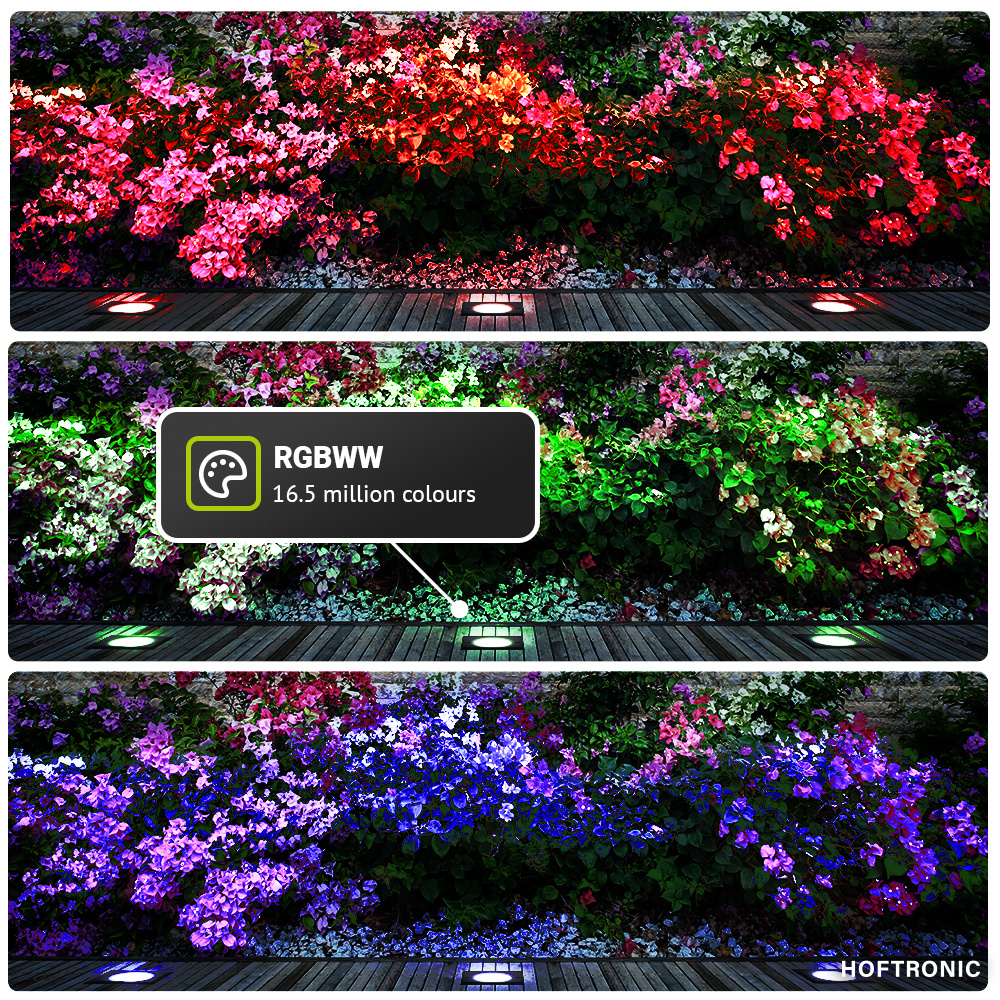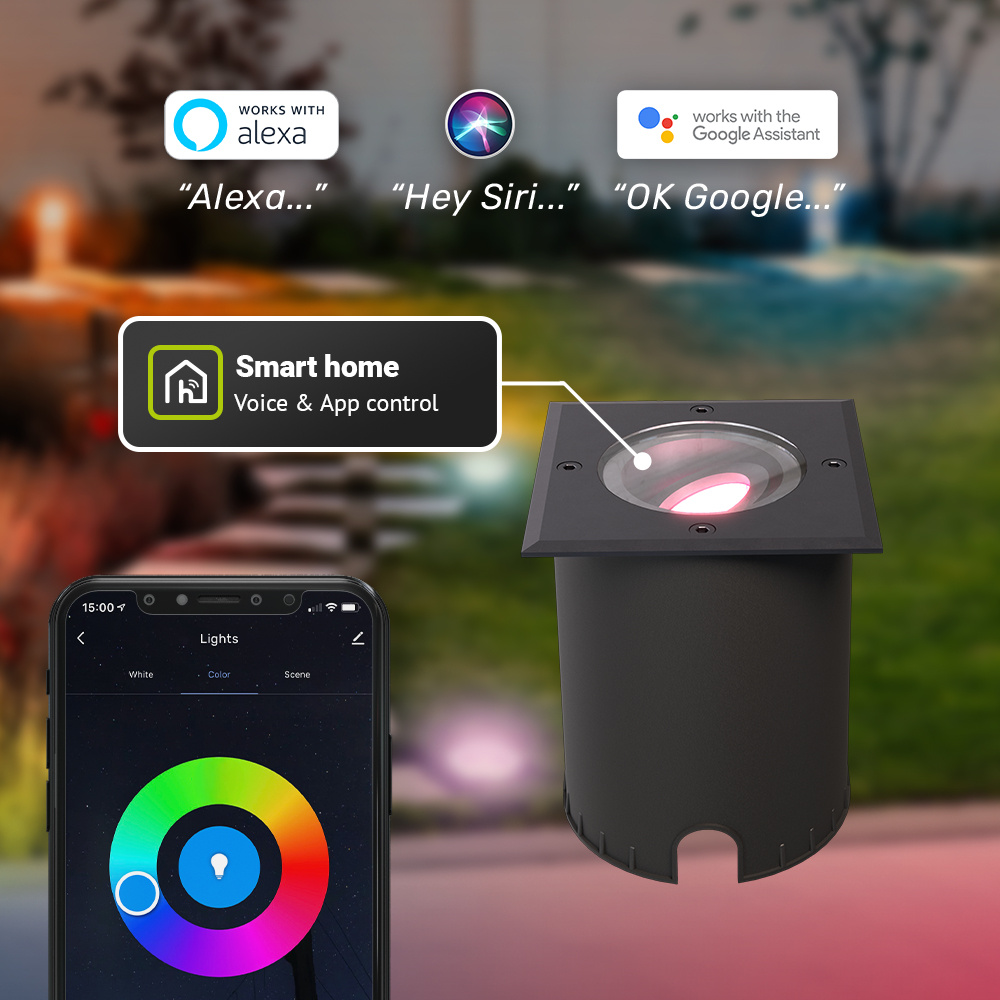 Koppel de grondspots aan de kosteloos Hoftronic Smart app en je krijgt oprijlaan tot tientallen smart functies. Zo haal je het maximale uit je smart verlichting. Een aantal van de smart functies zijn: