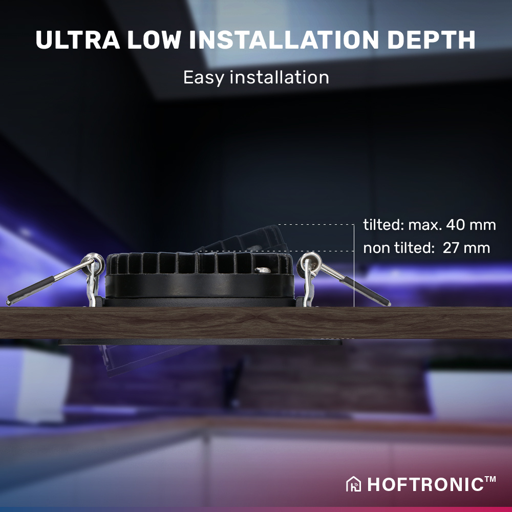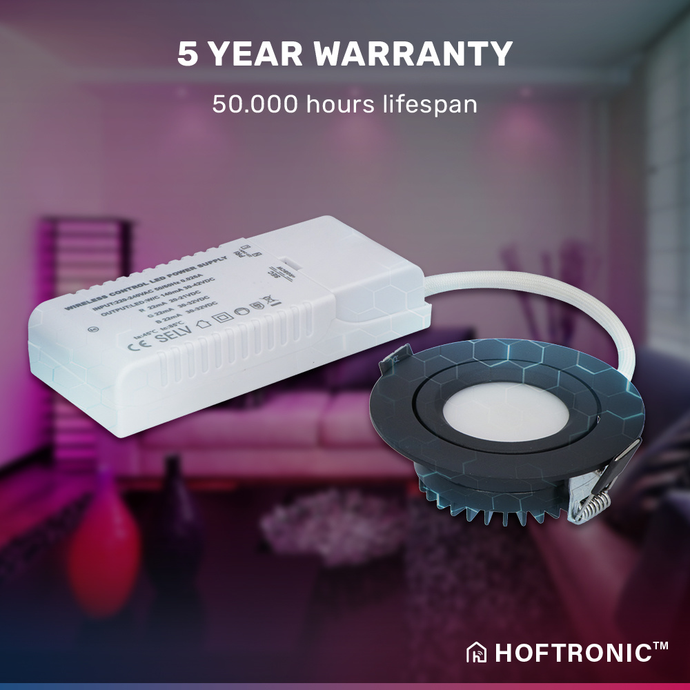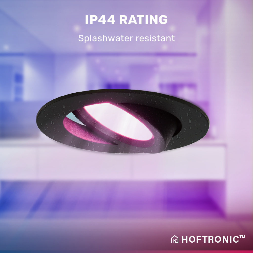 HOFTRONIC SMART Smart LED inbouwspot Rome – Zwart – 6 Watt – WiFi & Bluetooth – RGBWW – IP44 – Dimbaar via app – Kantelbaar