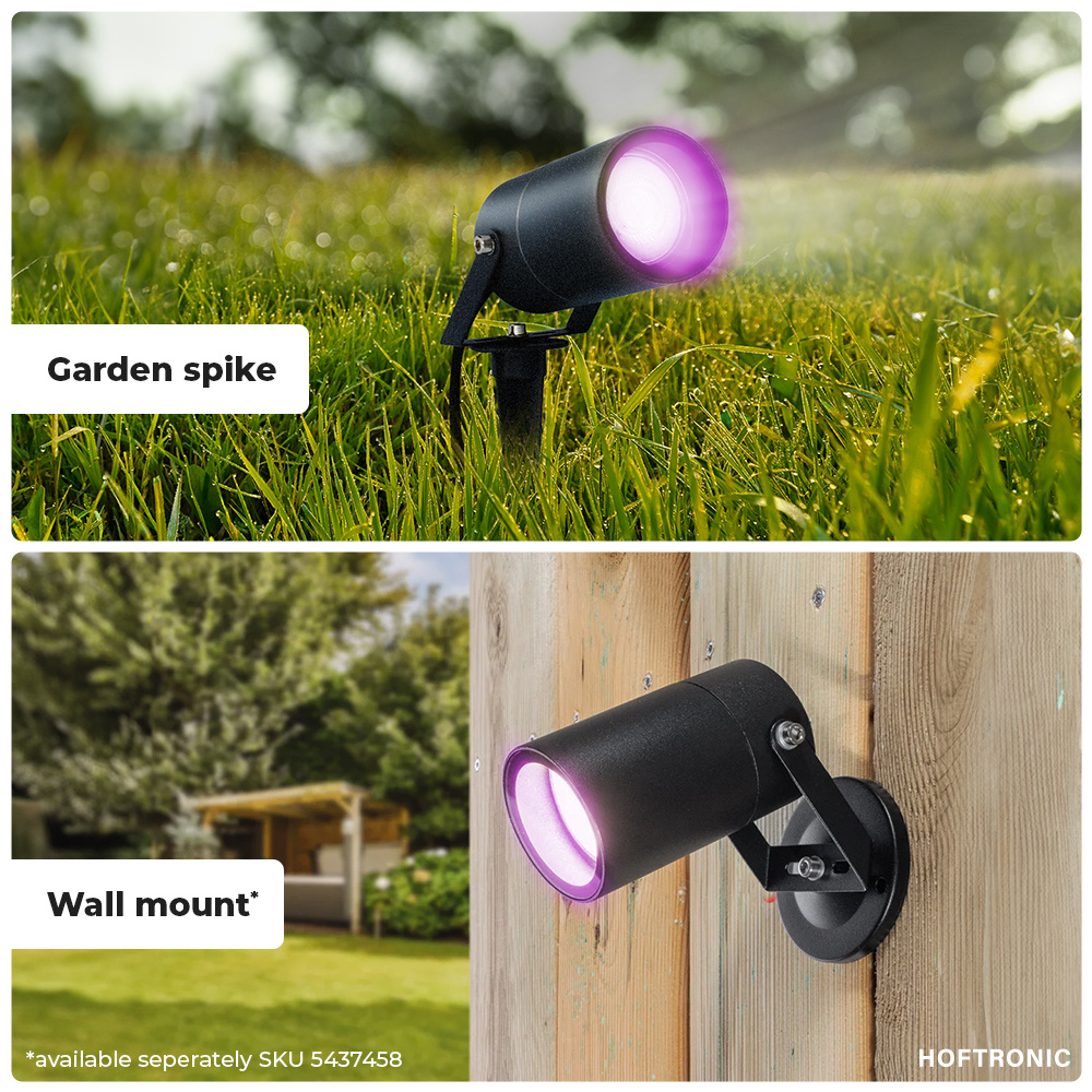 Licht je planten uit op een sensationele manier met deze slimme prikspot. De smart Spikey is voorzien van een lichtbron met maar liefst 16,5 miljoen kleuren en tientallen smart functies. Je kunt de Spikey ook koppelen aan je smart assistent, hierom kun je de tuinlamp bedienen met je stem. Vanuit de Hoftronic Smart Home app kun je de spot koppelen aan: Google Home, Amazon Alexa en Siri.