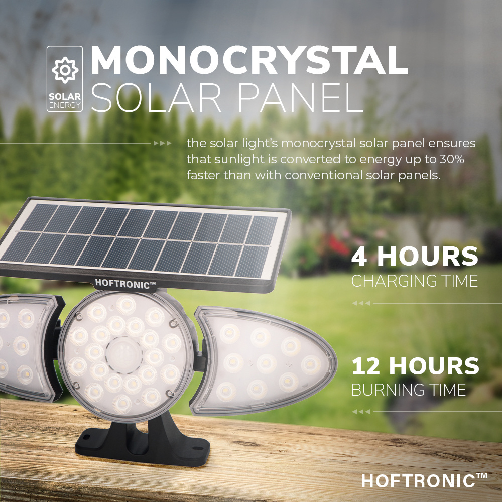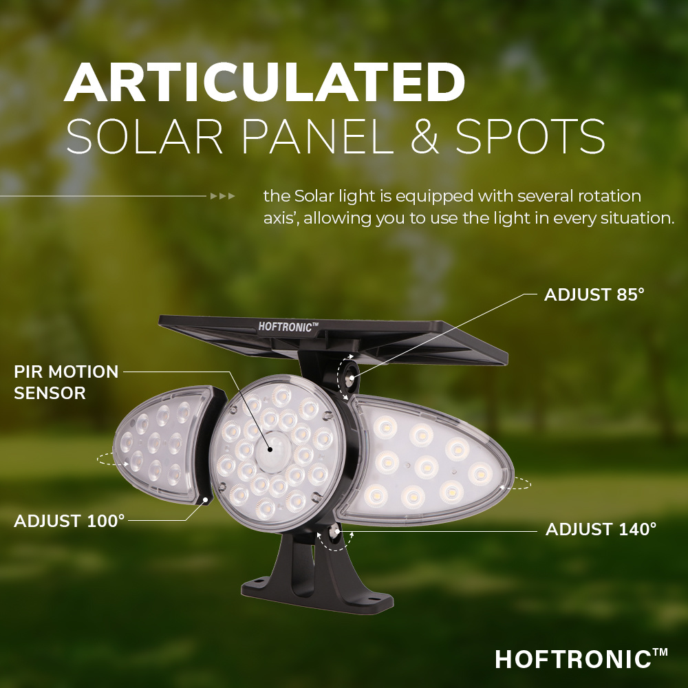 Het design van de Fulco solar tuinspot is erg strak, maar ook flexibel. Dat is niet voor niets! Deze toezichthouder van je tuin heeft immers 3 allerlei spotlights, waarvan de twee lampen aan de zijkant verstelbare en kantelbaar zijn. Op deze manier kun je zelf vaststellen waar je de lichtbundels op richt, zodra deze Fulco beweging detecteert.
