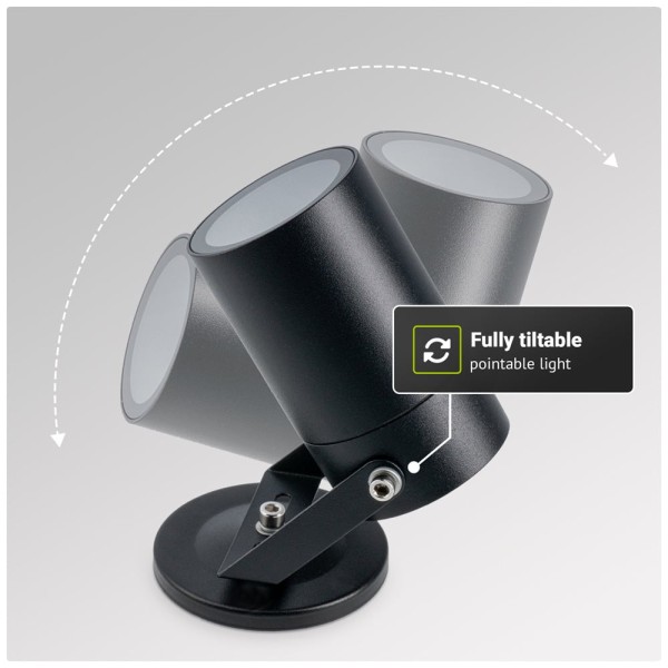 De Spikey wandspot is een echte musthave voor aan je schutting of pergola. Door de compacte ronde wandplaat en de te verstellen beugel aan de achterkant van de spot kun je Spikey in vrijwel elke hoek ophangen. Daardoor kun je de eersterangs plekken in jouw tuin juist uitlichten.