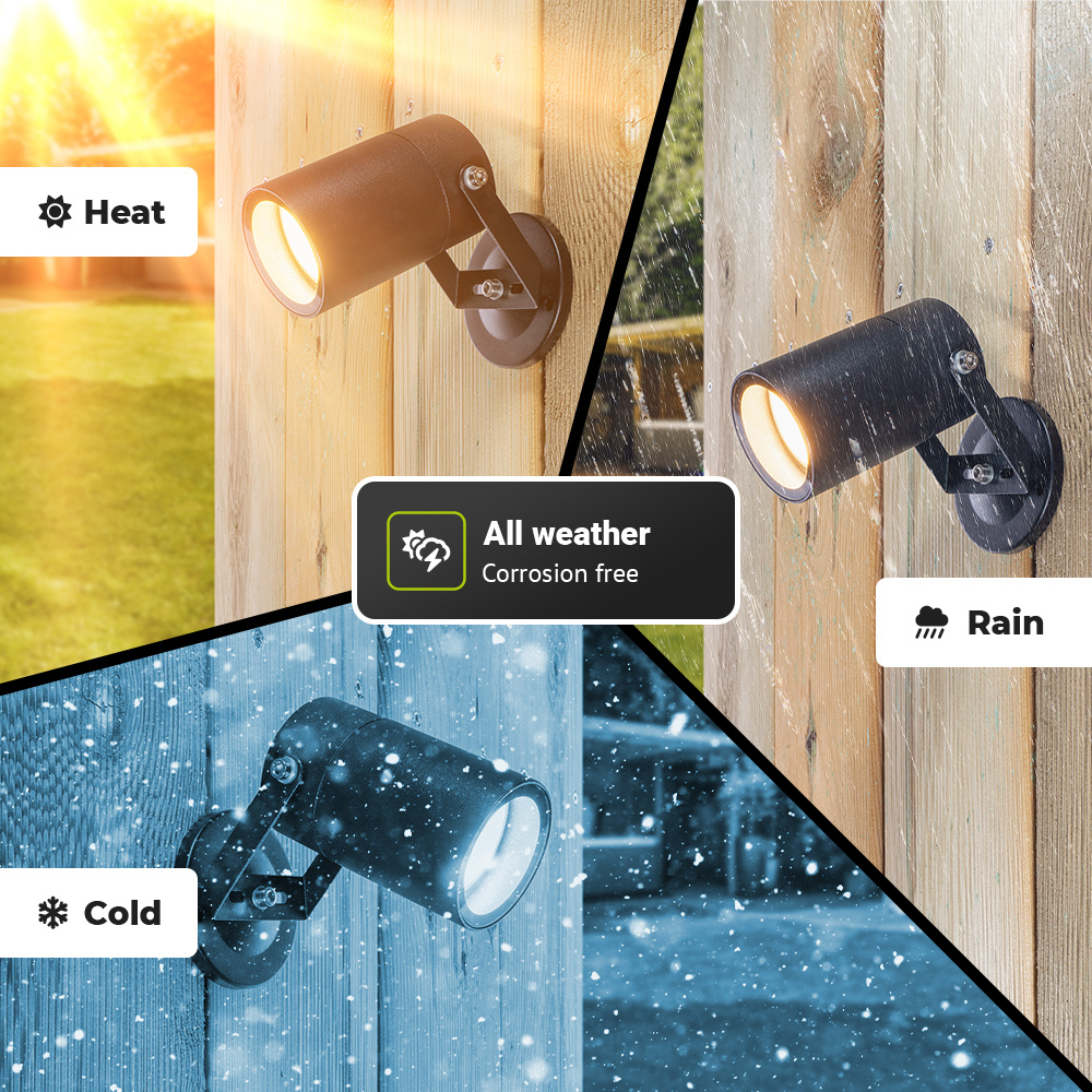 Door toepassing van dikke waterdichte rubbers aan de binnenkant van het armatuur, bezit de Spikey prikspot over een IP65 beschermingsklasse. Dit betekent dat de prikspot vol stofdicht is en in regelrecht contact kan komen met water. Je kunt de Spikey dus gerust het hele jaar buiten laten hangen.