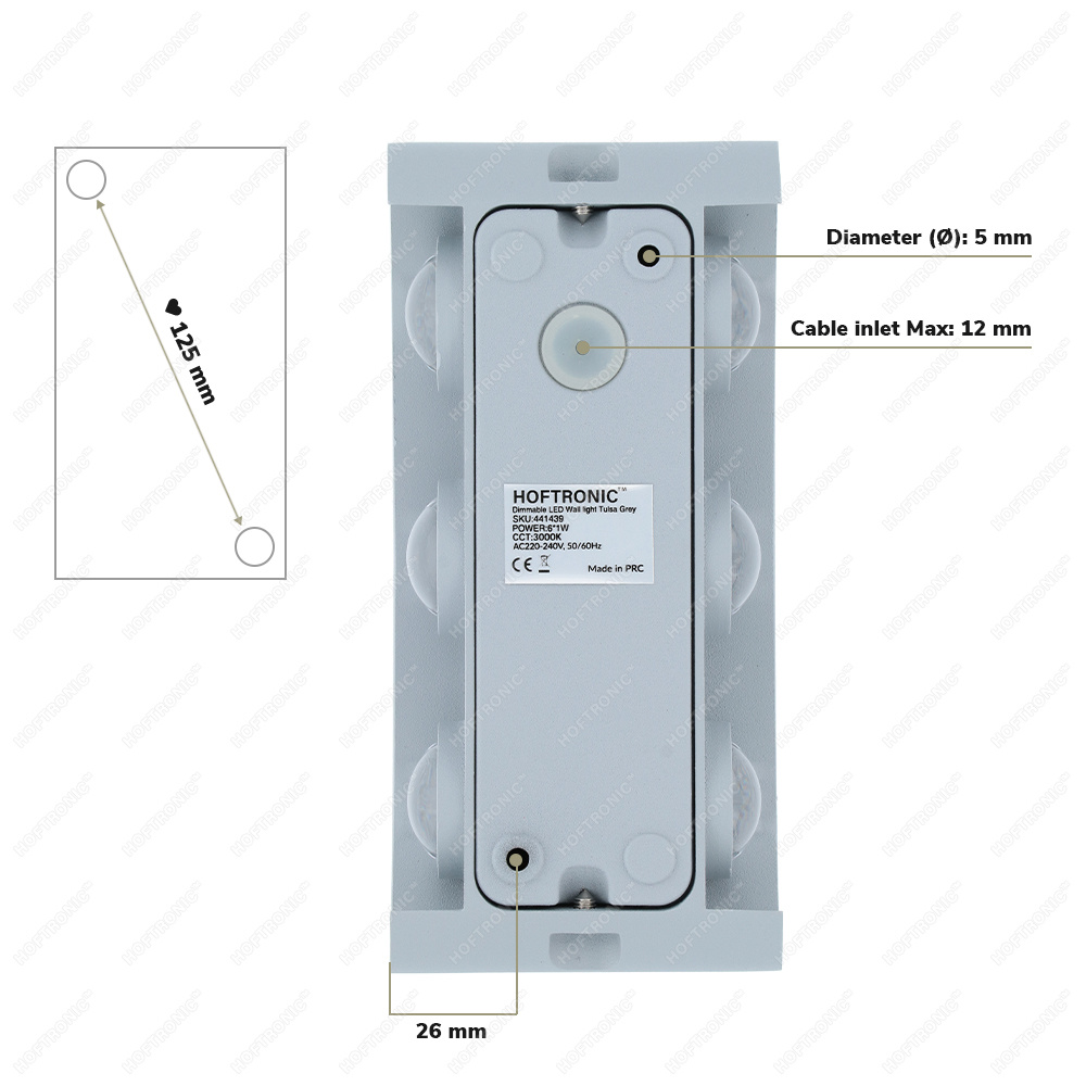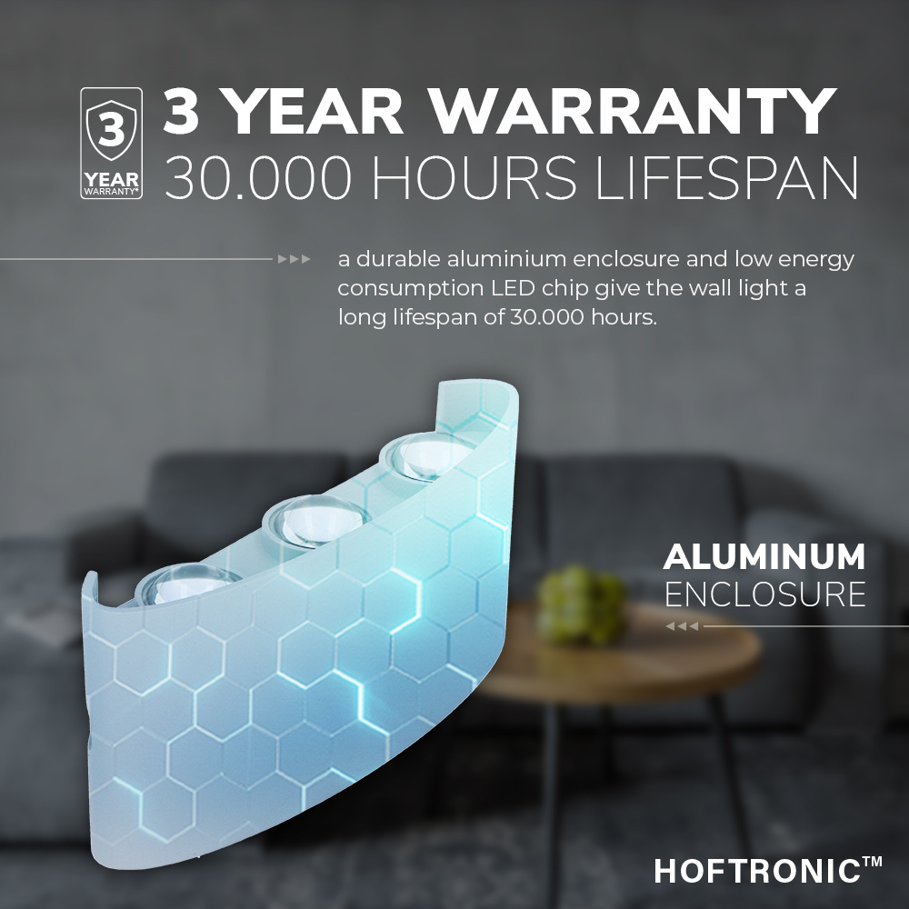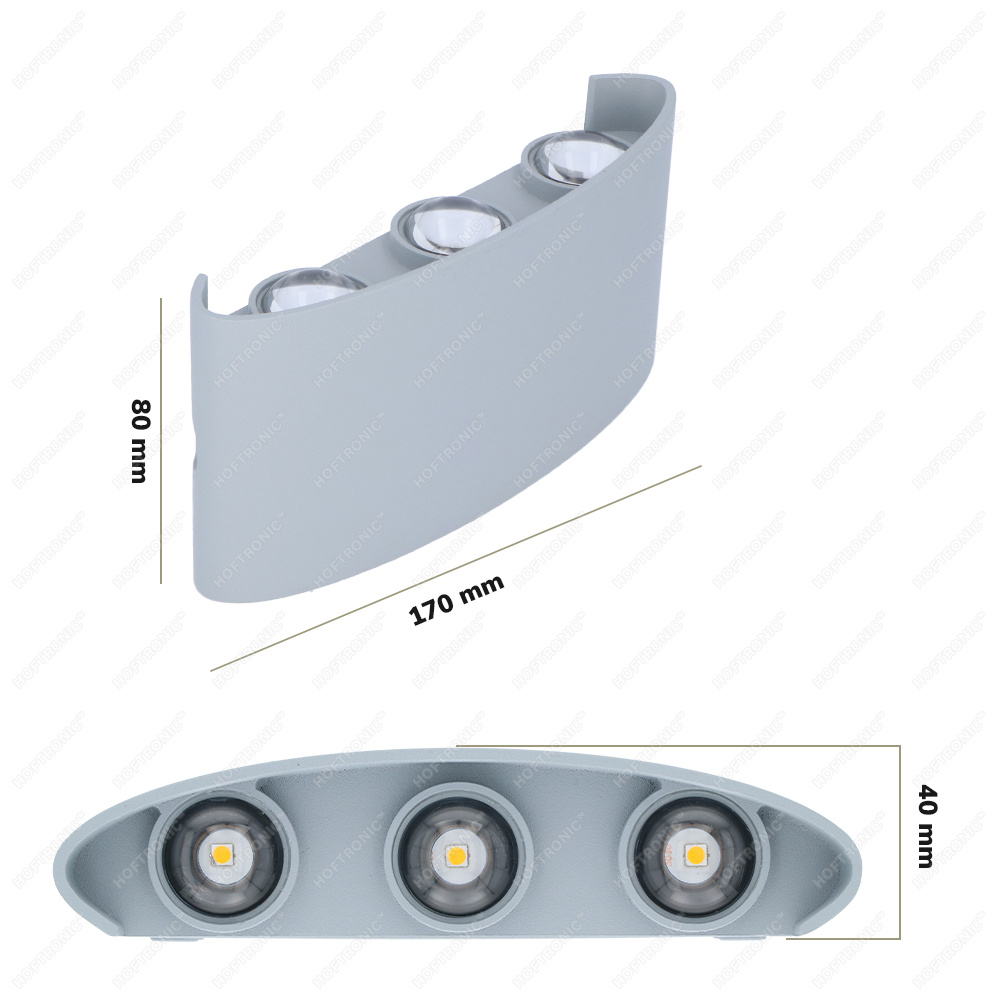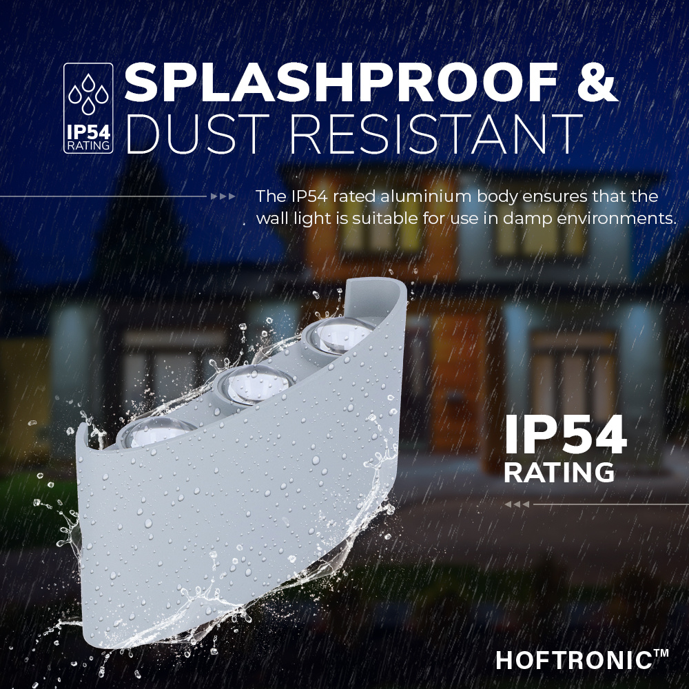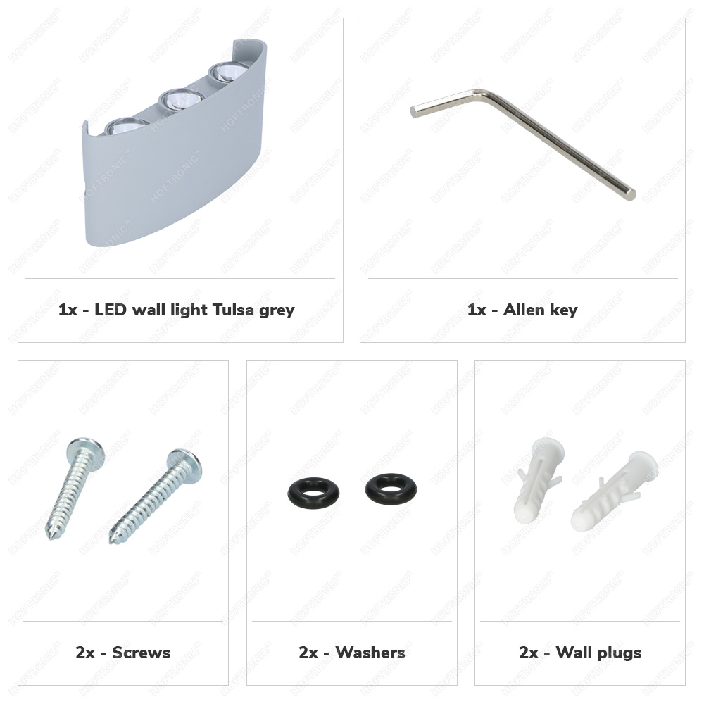 Hoftronic Tulsa dimbare LED wandlamp – Up & Down light – IP54 – 6 watt – 3000K warm wit – Binnen en buiten – 3 jaar garantie – Grijs
