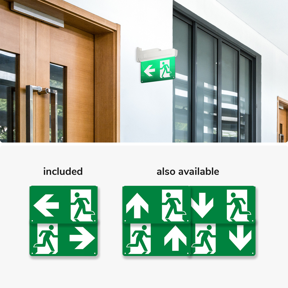 • Incl. 2 vluchtwegstickers: De lamp wordt bezorgd met 2 vluchtwegstickers: een pijl naar links en een pijl naar rechts. Overige stickers kunnen als set apart besteld worden. Hierdoor is de noodverlichting juist voor elke plek.