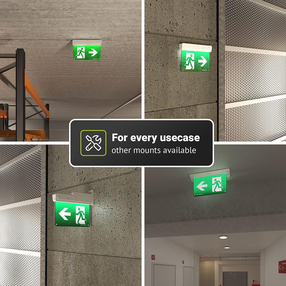 De Tumu is een professionele noodverlichting die je met het meegeleverde kabel-ophangsysteem aan het plafond kunt hangen. De kabels van het ophangsysteem zijn tot 100 cm verstelbare in grootte zodat het ook juist is voor hoge plafonds. NB. De Tumu is ook leverbaar als wand- of plafondopbouw, inbouw of uithangbord. Hiervoor zijn uitzonderlijke bevestigingssets verkrijgbaar die zowel inclusief als bij uitsluiting van de Tumu apart leverbaar zijn.