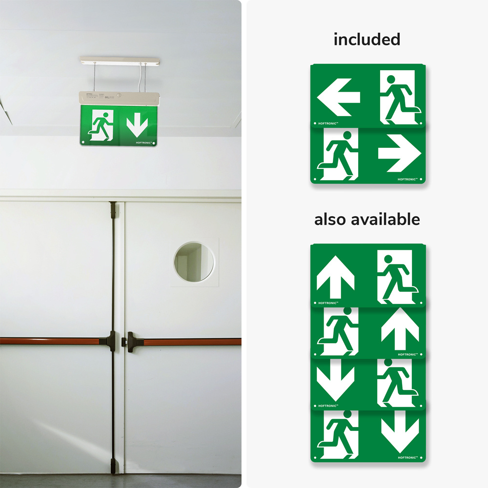 Het nooduitgang bord heeft een handige autotestfunctie. Dankzij de autotestfunctie voert de lamp elke maand en iedereen jaar automatisch een zelftest uit. Als de lamp niet maximaal functioneert, zal een rode led-indicator gaan branden of knipperen. Dit verhoogt niet alleen de zekerheid, maar bespaart ook tijd omdat je de lamp niet meer elke maand handmatig hoeft te testen. De Tumu wordt geleverd met 2 meerdere vluchtwegstickers (een pijl naar links en een pijl naar rechts). Extra stickers, onder andere een pijl naar boven of onder zijn als set apart bij te kopen. Deze noodverlichting verbruikt slechts 2,2 watt en schijnt een helder 6500K daglicht wit licht waarmee hij in alle situaties maximaal waarneembaar is.