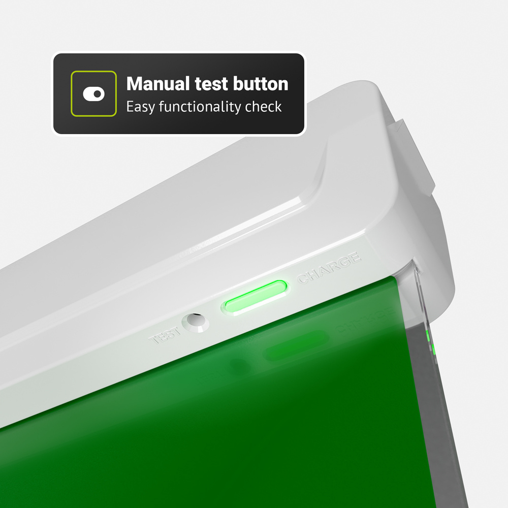 Het nooduitgang bord heeft een testknop waarmee je handmatig kunt controleren of de noodverlichting automatisch inschakelt bij stroomuitval. De Tumu wordt geleverd met 2 uiteenlopende vluchtwegstickers (een pijl naar links en een pijl naar rechts). Extra stickers, bijvoorbeeld een pijl naar boven of onder zijn als set apart bij te bestellen. Deze noodverlichting verbruikt slechts 2,2 watt en schijnt een helder 6500K daglicht wit licht waarmee hij in alle situaties goed zichtbaar is.
