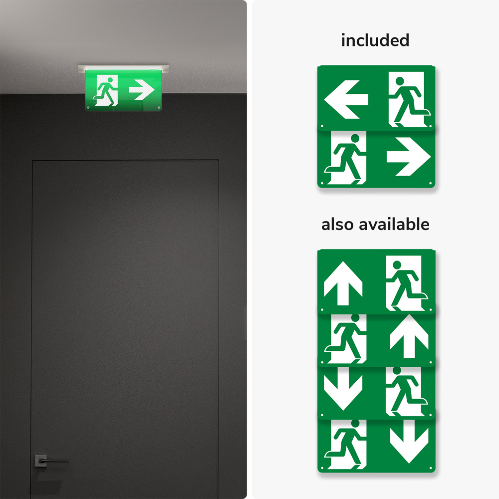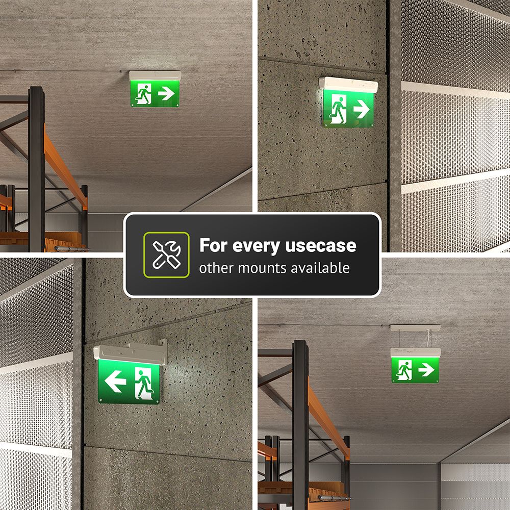 Het nooduitgang bord heeft een testknop waarmee je handmatig kunt controleren of de noodverlichting automatisch inschakelt bij stroomuitval. De Tumu wordt overgedragen met 2 allerlei vluchtwegstickers (een pijl naar links en een pijl naar rechts). Extra stickers, onder andere een pijl naar boven of beneden zijn als set apart bij te bestellen. Deze noodverlichting verbruikt slechts 2,2 watt en schijnt een helder 6500K daglicht wit licht waarmee hij in alle situaties extreem zichtbaar is.