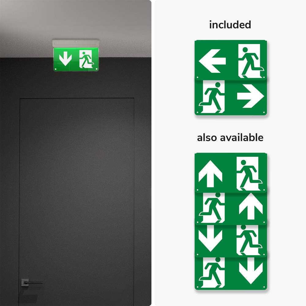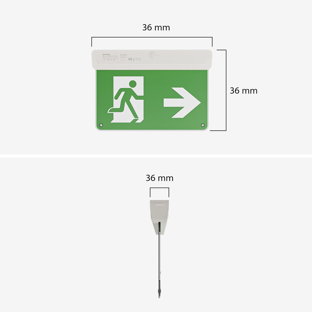 Het nooduitgang bord heeft een testknop waarmee je handmatig kunt controleren of de noodverlichting automatisch inschakelt bij stroomuitval. De Tumu wordt overgedragen met 2 brede vluchtwegstickers (een pijl naar links en een pijl naar rechts). Extra stickers, bijv. een pijl naar boven of beneden zijn als set apart bij te bestellen. Deze noodverlichting verbruikt slechts 2,2 watt en schijnt een helder 6500K daglicht wit licht waarmee hij in alle situaties lekker zichtbaar is.