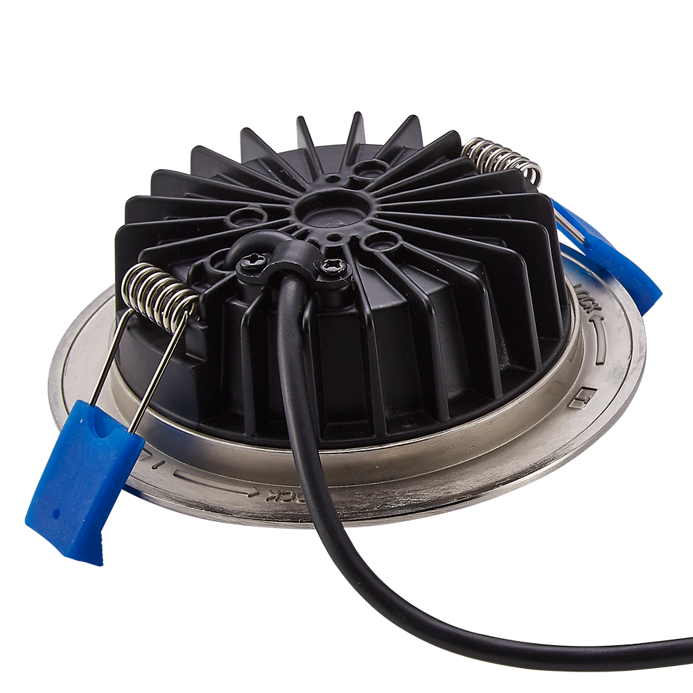 Het krappe, keurige, RVS design van de spots geeft een moderne maar tevens tijdloze uitstraling. In een wit plafond of een witte muur werk je de spots mooi weg. In een donkerkleurig gekleurde muur of plafond, steken de spots mooi af wat een leuk detail kan zijn in de ruimte