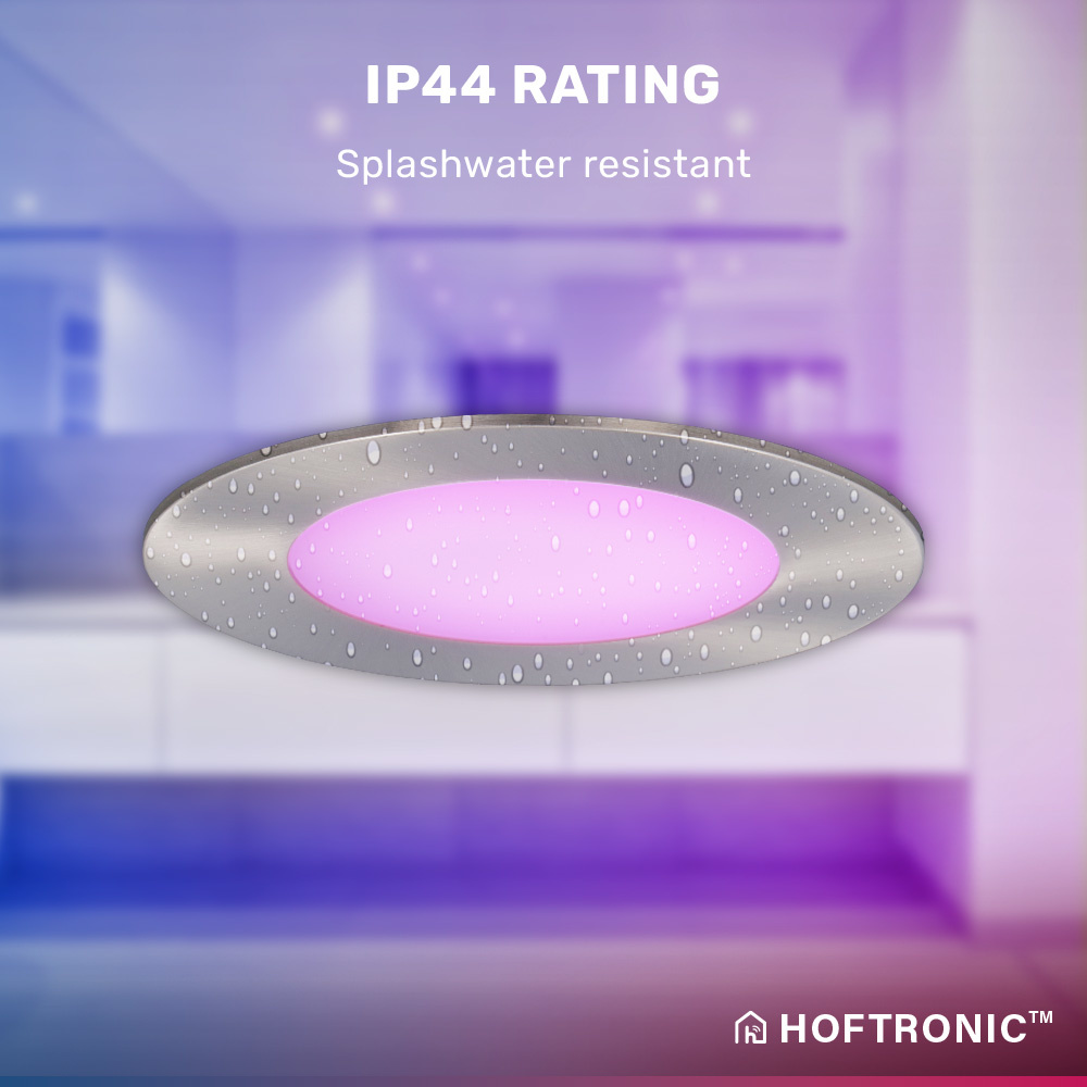 De SMART RGBWW inbouwspot RVS van Hoftronic Smart is een mooi en modern artikel om je huis, kantoor, winkel of in de horeca te verlichten. Het zijn slimme inbouwspots, wat betekent dat ze te bedienen zijn via je smart items bijvoorbeeld je telefoon of tablet, via de Hoftronic Smart app. De inbouwspots produceren 16.5 miljoen menig kleuren licht, met daarnaast een warm witte en koel witte lichtkleur. Dit maakt het toevallig in elke ruimte een stijlvolle sfeer te creëren.