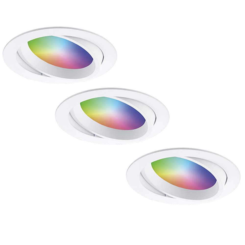 Set van 3 Luna – Kantelbare Slimme inbouwspots wit – 16,5 miljoen kleuren – WiFi & Bluetooth – Ronde plafondspots smart