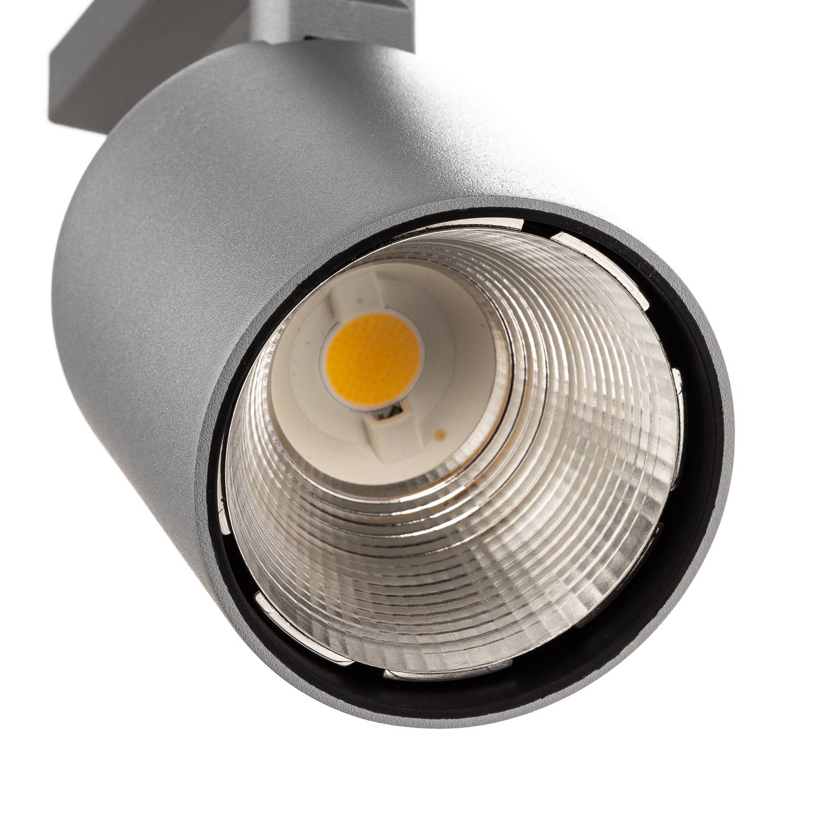 Heldere Perfetto Puro LED spot voor 3-fase rail In combinatie met de LKM 3-fase rail zorgt deze moderne LED spot voor een heldere vlakverlichting. Perfetto Puro is een aluminium spot met een monochrome afwerking die teruggebracht is tot het essentiële. De cilindrische kop kan worden versteld om het gewenste gebied in de kamer te verlichten. Het kernelement zijn de krachtige COB-LED’s, waarvan het licht via een metalen reflector wordt gericht en zorgt voor een adequate verlichting met gering verlies, vooral in openbare ruimten zoals bedrijfsruimten, verkoopruimten en receptie-/vergaderruimten in hotels. – Geleverd met spooradapter en ballast – verblindingsbescherming: UGR 20 – middelbrede stralingshoek: 30° – 355° draaibaar, 90° zwenkbaar