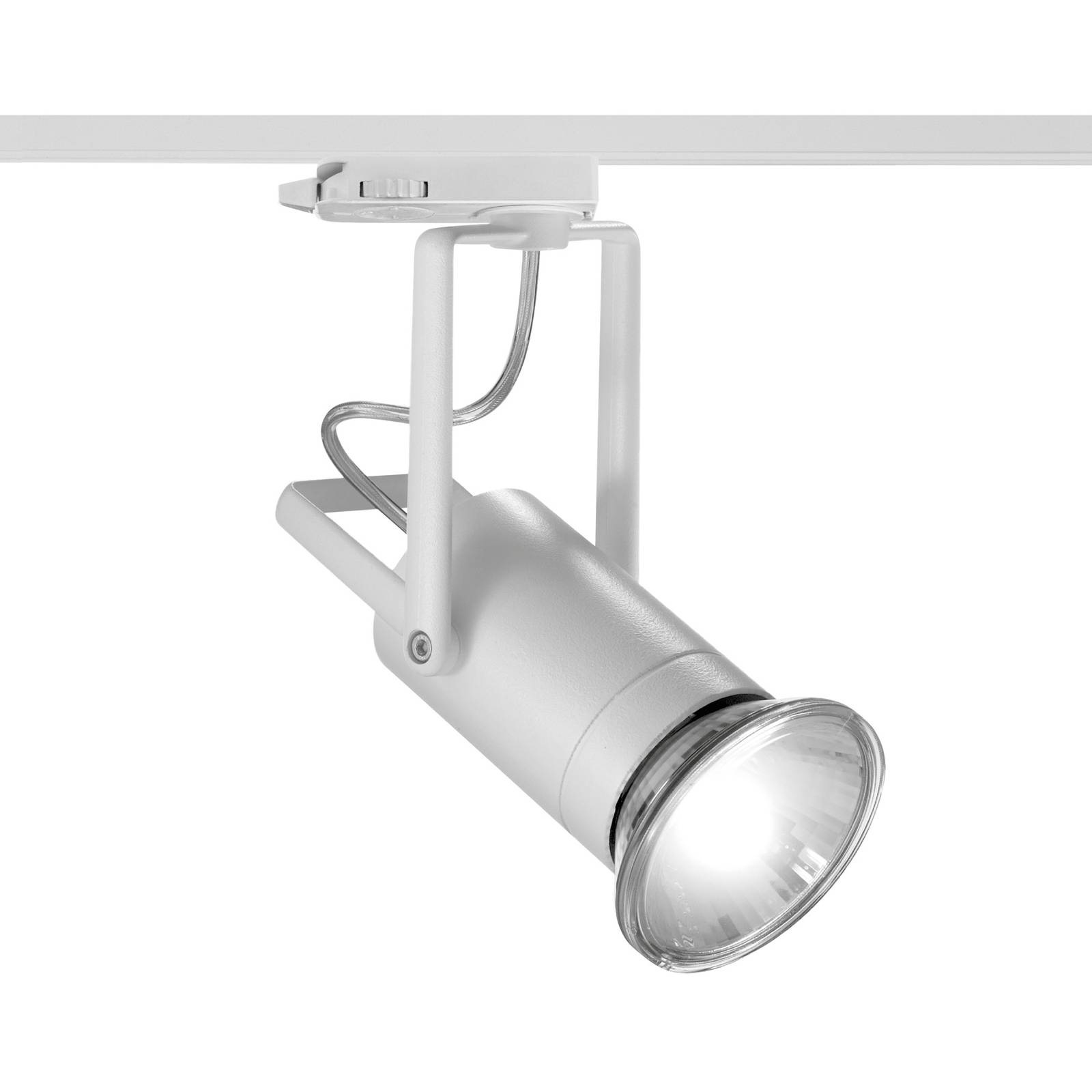 Flexibele LED spot Drim met E27 fitting voor LKM 3-circuit track Deze track spot is ideaal voor gerichte presentatieverlichting, bijvoorbeeld boven productdisplays, in etalages en showrooms. Drim is gemaakt van aluminium, heeft een monochrome afwerking en een technisch modern ontwerp. De cilindrische armatuurkop is draaibaar en zwenkbaar op de montagebeugel. Een handvat aan de achterkant vergemakkelijkt het hanteren. De spot kan worden uitgerust met PAR30-lampen naar keuze met E27-lampvoet. – Geleverd met railadapter – 355° draaibaar, 90° zwenkbaar