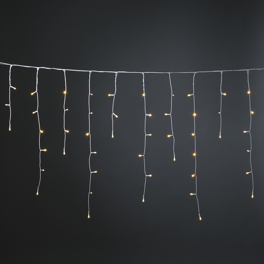 De ijspegelverlichting werkt op 30 volt en kan dankzij de waterdichte transformator regelrecht op de stroom worden aangesloten. In geheel telt deze ijsregen verlichting 400 amberkleurige LEDs.