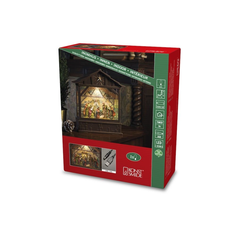 Met dit wintertafereel van Konstsmide heeft u een echte sfeermaker tijdens de feestdagen. Het tafereel bestaat uit een kerststal met scene. De intieme kerststal met alle figuranten zijn voorzien van verlichting waardoor deze extra sfeervol lijkt. Hierdoor waakt deze kerstverlichting dat de duisternis zeer subtiel plaatsmaakt voor een sfeervolle kerstsfeer.