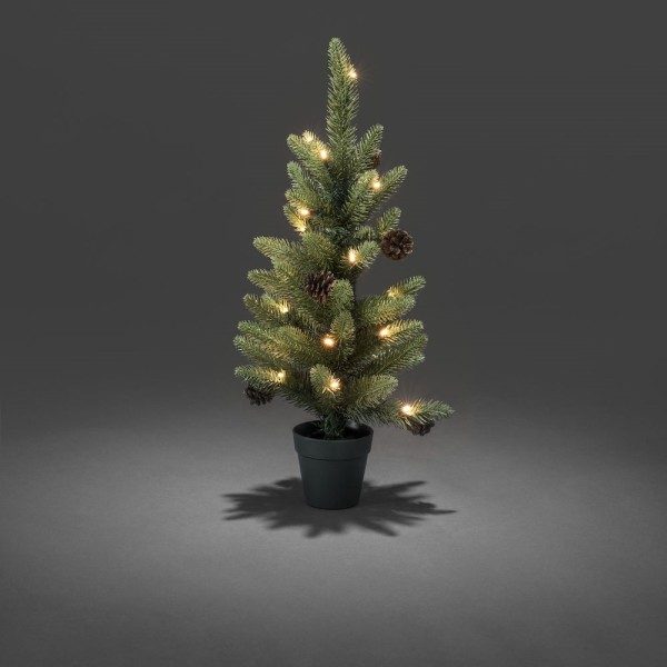 Deze kunstkerstboom van 60 centimeter hoog zorgt voor een heerlijke toevoeging in elke ruimte. Zo kun je hem bij de voordeur zetten voor een warm welkom of een toffe plek op de tafel of dressoir. Deze kunstkerstboom is voorzien van 20 LEDs met een warm witte lichtkleur. Dankzij de batterijen hoef je je geen waken te maken over stopcontact en heb je geen last van kabels. Deze kunstkerstboom is voorzien van een timer zodat je niet elke dag de kunstkerstboom zelf aan en uit hoeft te zetten.