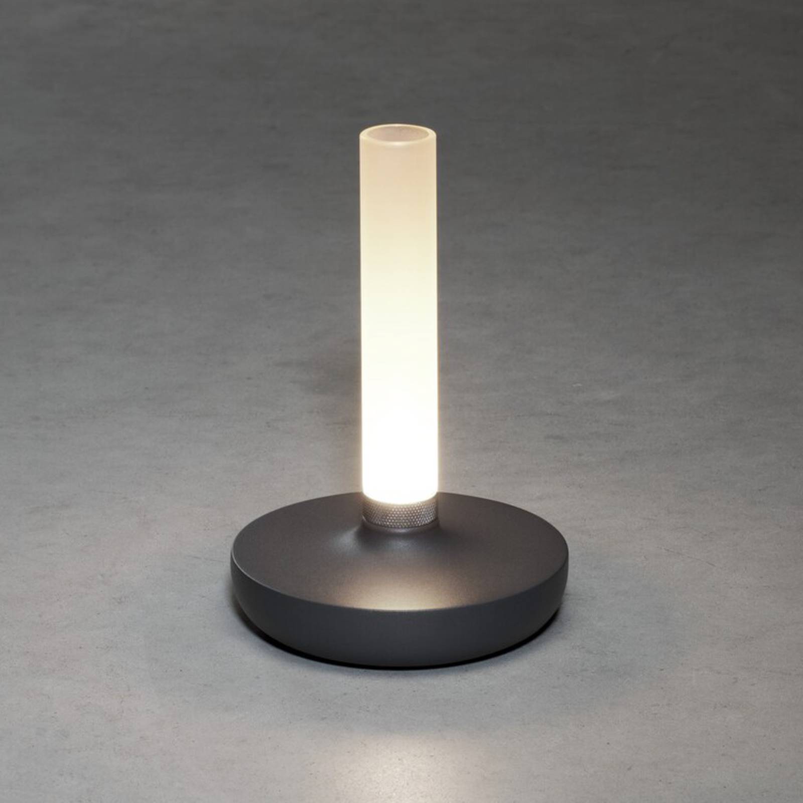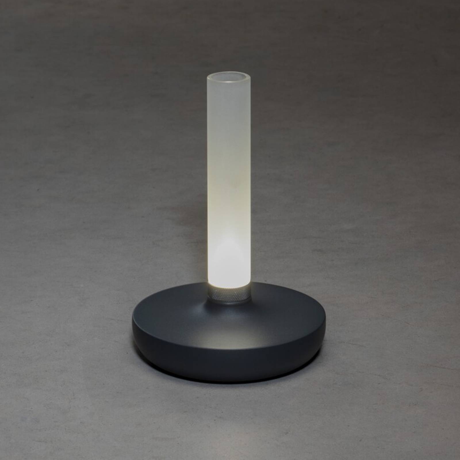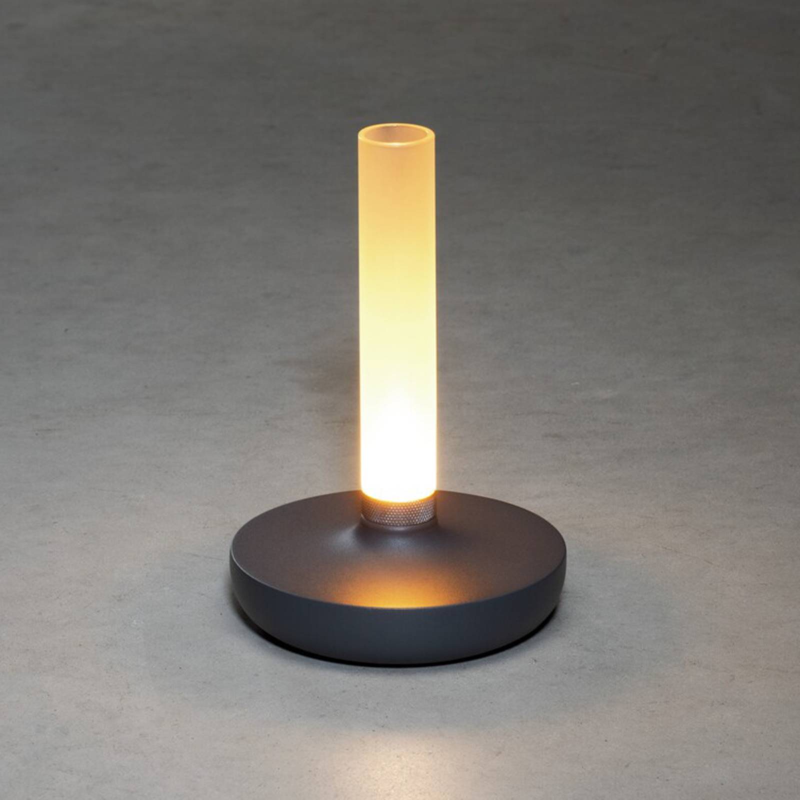 Biarritz – LED terraslamp en bloemenvaas met batterijvoedingAls lichtgevend accessoire voor bijna elke omgeving overtuigt de LED decoratielamp Biarritz. De diffuser van matglas is gemonteerd op de ronde staander van aluminium. Hij is buisvormig en waterdicht, zodat hij binnenin met water kan worden gevuld en als vaas kan worden gebruikt. Aan de basis bevindt zich de LED-lichtbron, waarvan het licht naar boven schijnt en door het glas zachtjes naar alle kanten wordt verspreid. Het schakelen en veranderen van de lichtkleur gebeurt via de schakelaar onder de voet. Bovendien maakt een metalen draairing aan de voet van het glas een traploos dimmen mogelijk.- traploos dimbaar- kleurtemperatuur veranderbaar in 3 stappen: 1.800 K, 3.000 K en 4.000 K- oplaadstation met USB-kabel inbegrepen (voor droog gebruik binnenshuis)- lichtduur per batterijlading: 9 uur bij 100% lichtopbrengst- beschermingsklasse: IP54