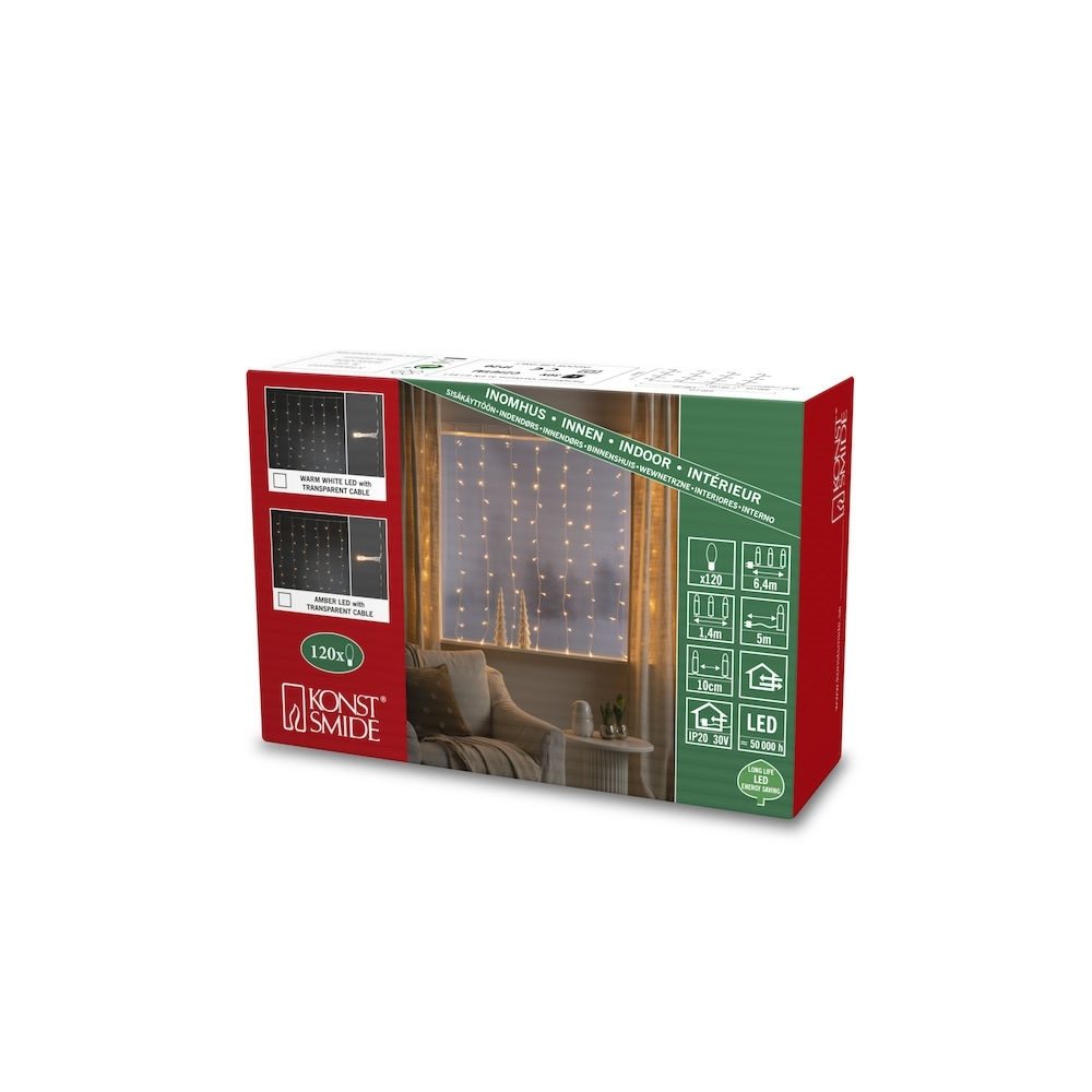 Konstsmide Lichtgordijn voor binnen – Extra warm wit – 1.4 x 1.2 meter – – 120 LEDs – Kerstverlichting
