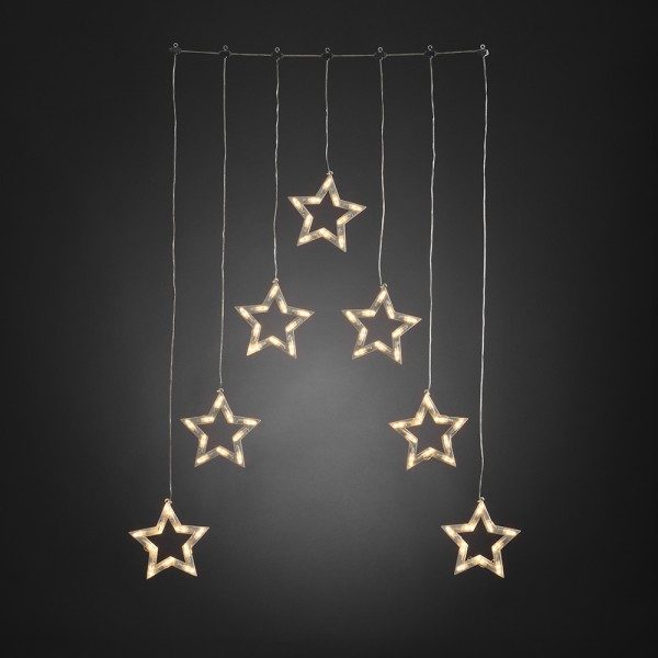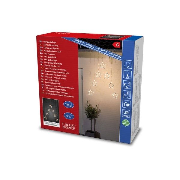 Op zoek naar unieke kerstverlichting voor aan je raam, gevel of dakgoot? Wat dacht je van dit lichtgordijn met sterren van het Zweedse merk Konstsmide? Dit is een comfortabel lichtsnoer met zeven sterren met in geheel 70 warm witte LED lampjes. Hierdoor krijg je iedere keer als je naar buiten kijkt het echte kerstgevoel. Verwarm die ijskoude donkere dagen, met huiselijke kerstverlichting.