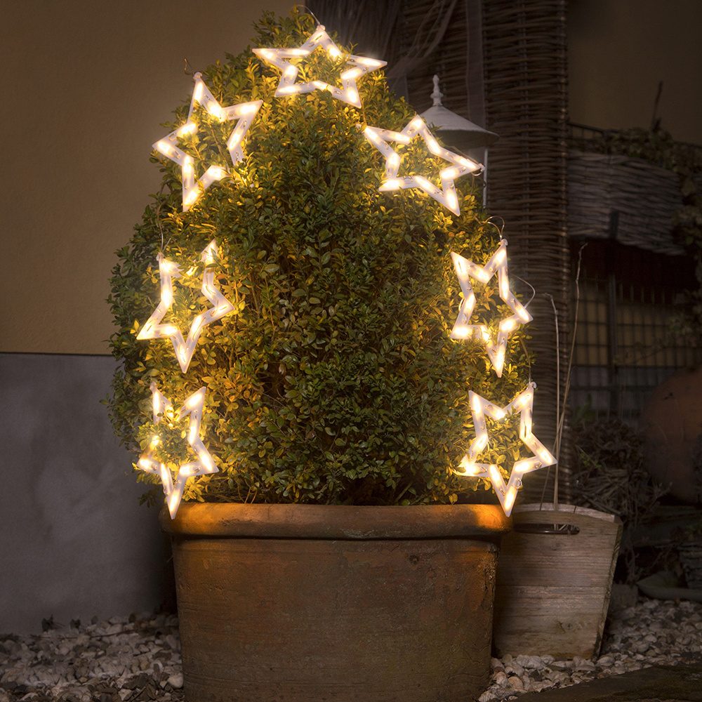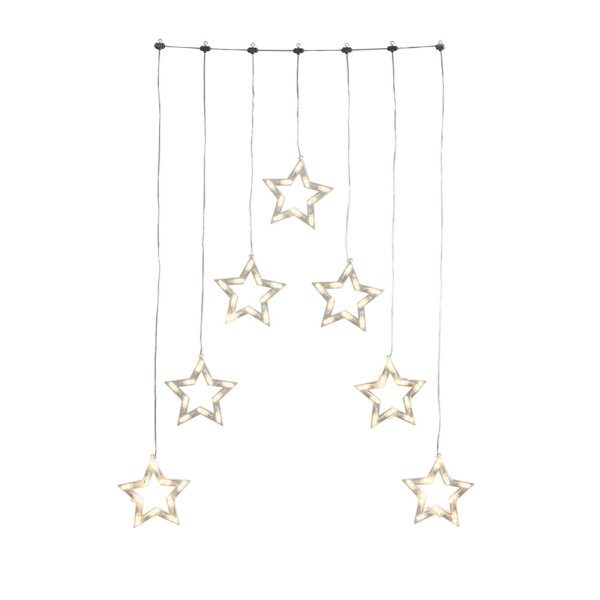 Dit sterrengordijn is aangenaam overal te ruimtes door de kabel van 10 meter. Je hoeft hierbij dus geen rekening te houden met een stopcontact dat in de buurt zit. Zo is er altijd wel een plekje rond het woning te vinden voor deze sfeermaker. De verlichte sterren vallen over een afstand van 72 centimeter snoer op meerdere lengtes naar beneden. Op die aanpak verschijningsvormen ze een driehoek met de punt naar boven, waardoor het uitzicht naar buiten niet belemmerd wordt.