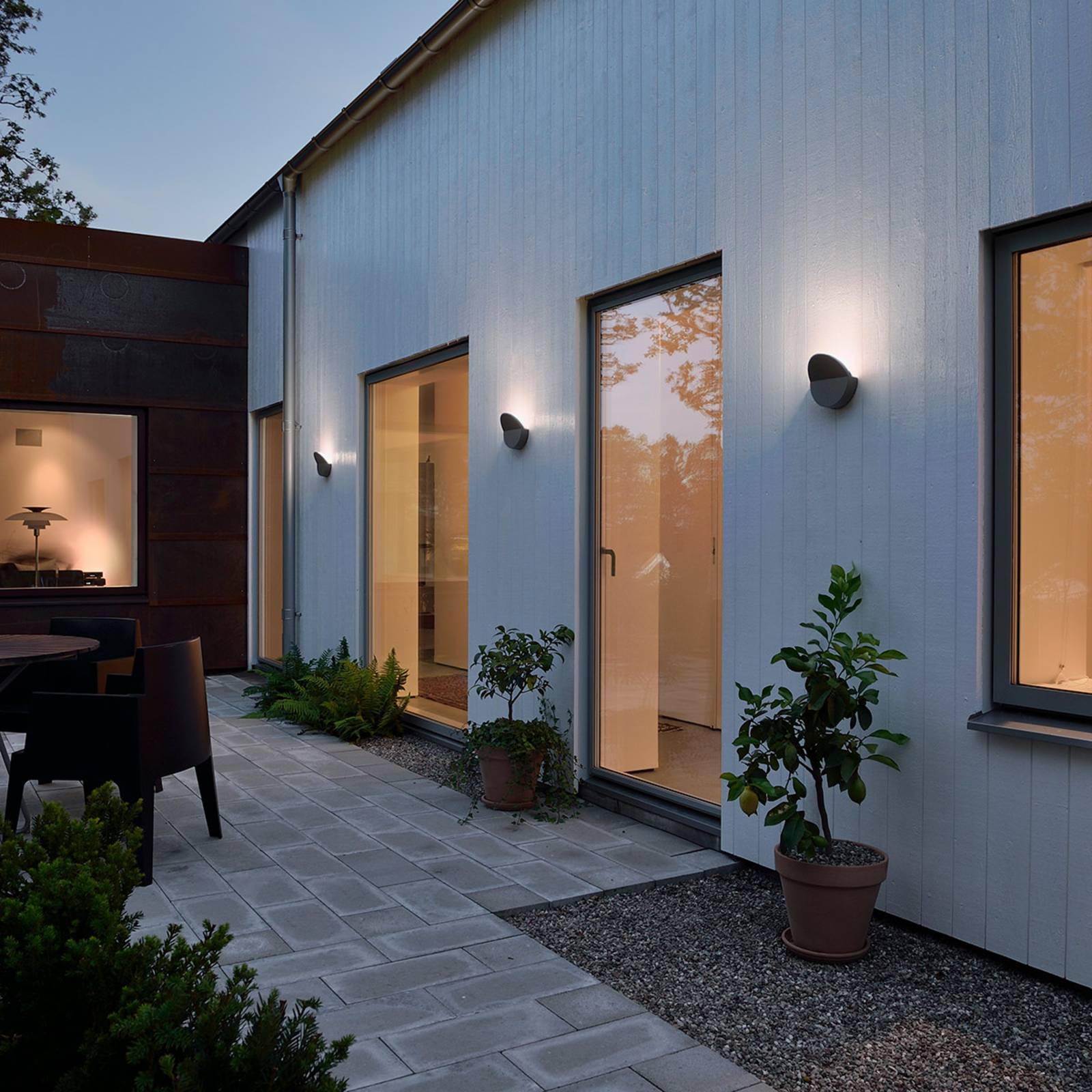 Ronde led buitenwandlamp Pescara uit aluminium De eenvoudige, ronde vorm en subtiele kleuren maken de led buitenwandlamp Matera een lamp die altijd en overal stijlvol en tijdloos is. De lichtbron is zodanig geplaatst, dat de kijker niet wordt verblind, omdat de ingebouwde led haar warmwitte licht alleen naar boven schijnt. De werkelijke lichtuitlaat wordt verborgen door een afgeschuinde opening, die de Matera tegelijkertijd een interessante vorm geeft. Tegen weer en wind is deze lamp dankzij IP54 bescherming goed voorbereid.