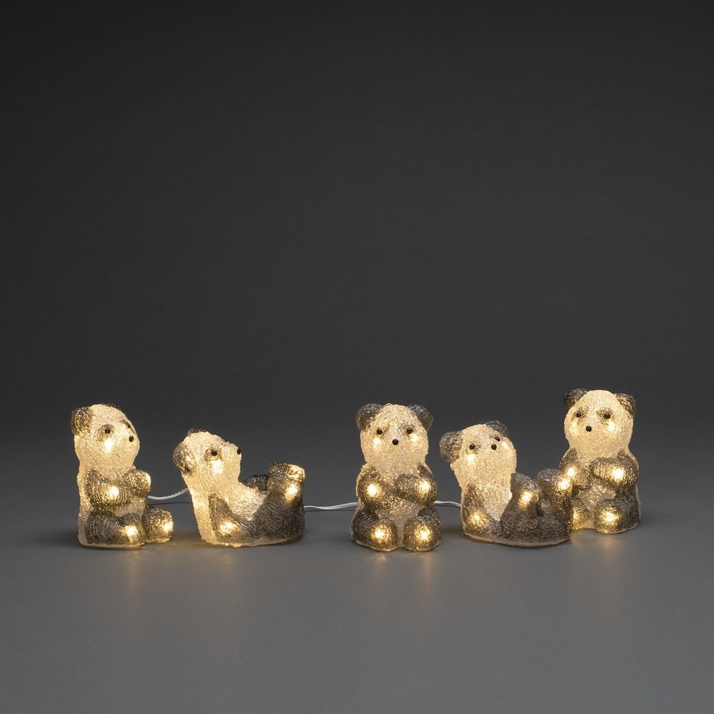 Hoe verfrissend is dit kerst lichtsnoer met 5 panda’s? Wij zijn fan. Het lichtsnoer kan door zijn IP44 waterdichtheid eenvoudig zowel thuis als buiten worden toegepast. De panda’s zijn 12 centimeter hoog en voorzien van maar liefst 40 warmwitte LED lichtjes. Deze warmwitte LED lichtjes verlichten de duisternis op een zeer subtiele manier. Dit lichtsnoer met elanden kun je mede nog eens overal benuttigen, door zijn IP44 waterdichtheid. Dit betekent dat het lichtsnoer met panda’s optimaal tegen vocht en stof kan. Ook maken de panda’s zich niet druk over ijzel en sneeuw. Het zijn tenslotte pandas.