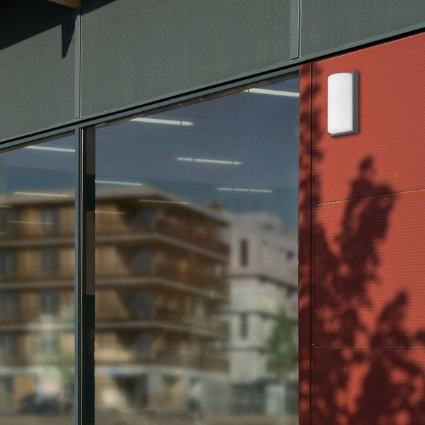 Deze eenvoudige buitenwandlamp uit de 039-serie in een grafietkleurige afwerking is voorzien van een hoogwaardig roestvrijstalen frame en een aluminium muurplaat. De diffuser is gemaakt van opaal glas en zorgt voor een gelijkmatig verdeeld licht. Geschikt voor 1 x E27 (exclusief), max. 75 W.
