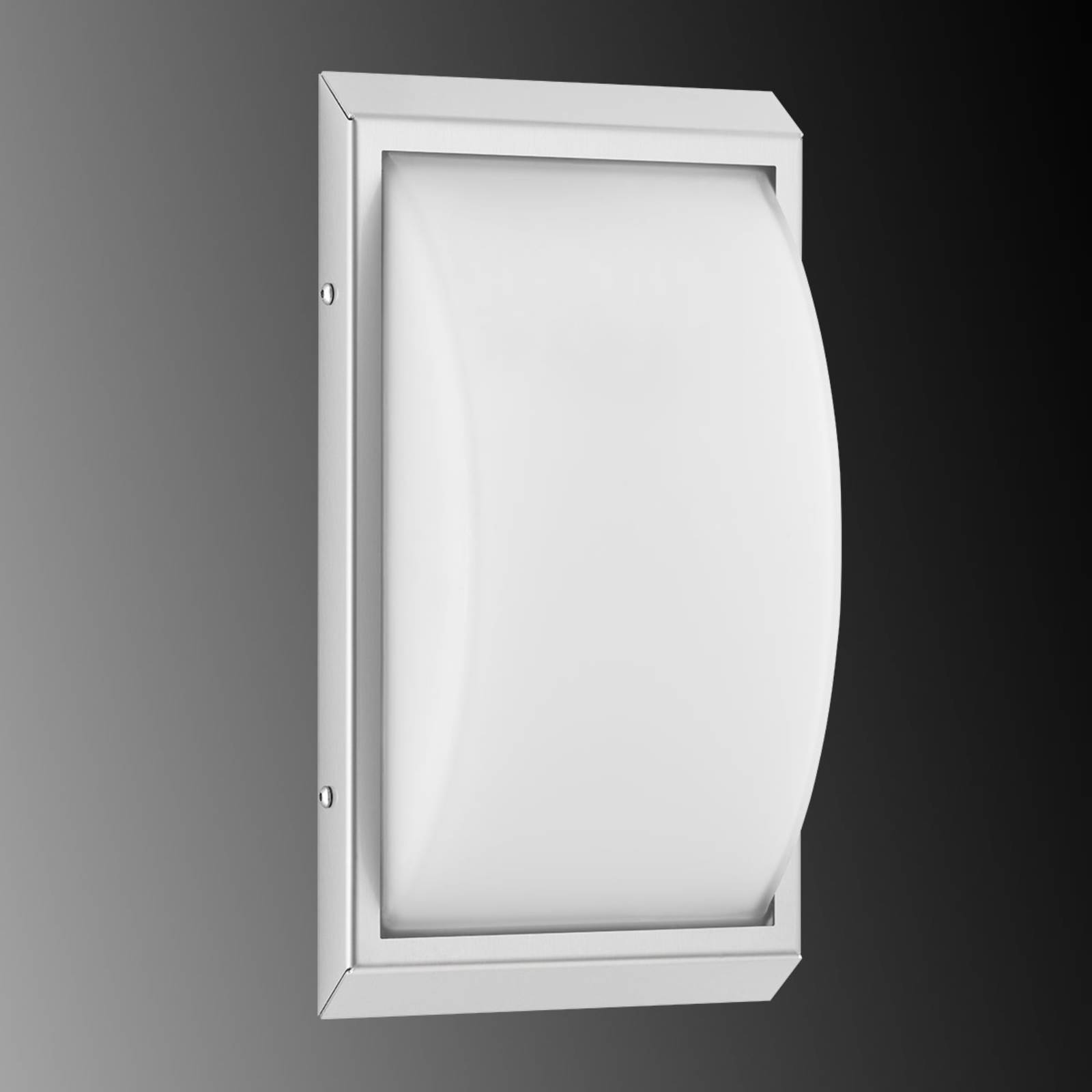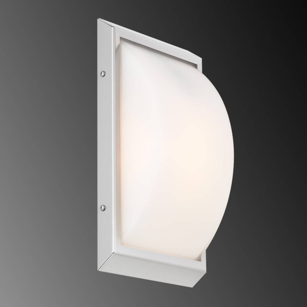 Moderne lichtbron – buitenwandlamp 052 De aantrekkelijk moderne en toch tijdloze buitenwandlamp 052 heeft een fascinerende, hoogwaardige afwerking: de wandplaat is gemaakt van gegoten aluminium. Een mooi opaal glas buigt erboven naar voren en geeft het licht een aangename glans. Een lichtbron die bij veel gevelstijlen past en helder licht geeft voor een adequate verlichting, bijvoorbeeld bij de ingang. Lamp: 1 x E27 75 W. Er kunnen echter ook spaarlampen en LED lampen E27 worden gebruikt. De lamp wordt niet meegeleverd.