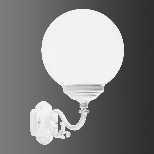 Deze buitenwandlamp van aluminium en acrylglas Mite heeft een Filigran beugel Die kunstig gebogen lijnen heeft voor een antieke Touch. De bolvormige, witte kap zit tronend op de beugel en het opalen materiaal zorgt voor een gelijkmatige lichtuitstraling aan alle kanten.