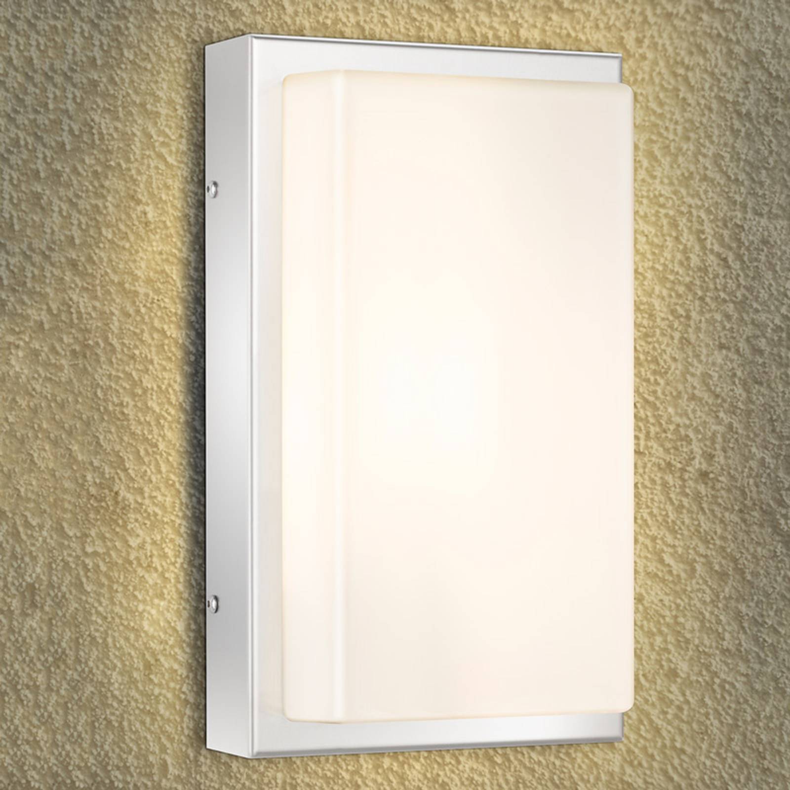 Hoogwaardige LED buitenwandlamp JULEA Gemaakt van roestvrij staal, gegoten aluminium en opaal glas in een vlakke, moderne Form, maakt de JULEA buitenwandlamp met energiebesparende, warmwitte LED’s indruk met haar extreem energiezuinige verlichting en onopvallende ontwerp. Ze kan ook aan het Deck worden bevestigd, bijvoorbeeld in een loggia of bij een overdekte ingang.
